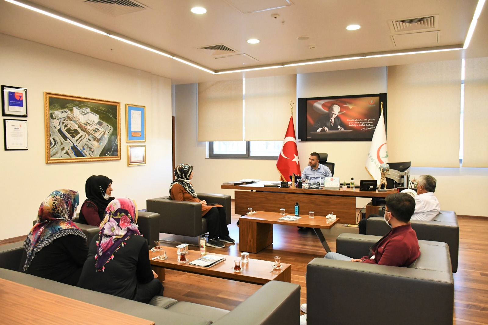 Yozgat Şehir Hastanesi Başhekimi Uz Dr. Mustafa Kozan, hastanede tedavi gören hasta yakınları ve refakatçileri başhekimlikte ağırlayarak sohbet etti, sorun ve taleplerini dinledi.