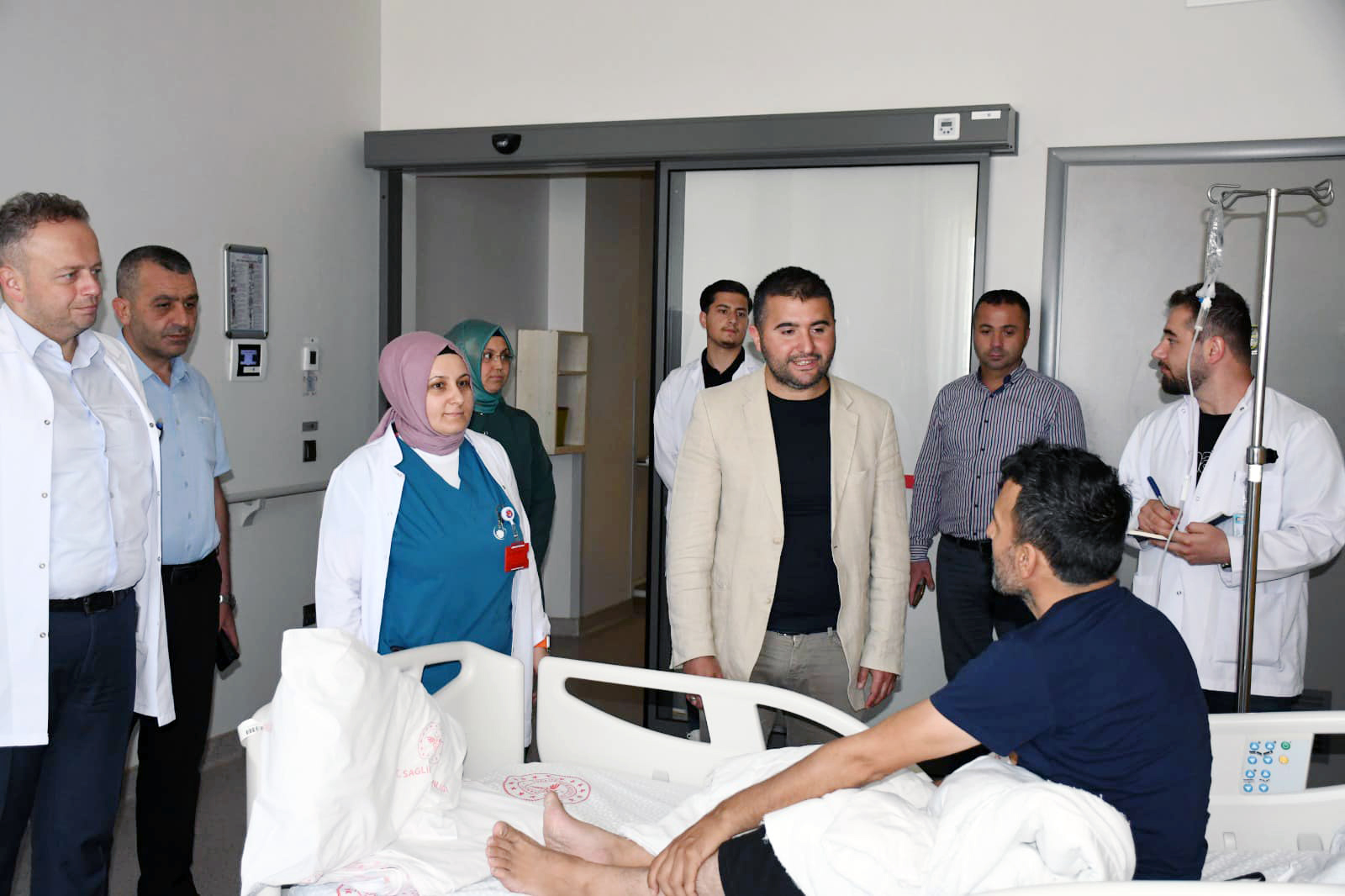 Hasta ve hasta yakınlarına moral ve destek vermek amacıyla düzenlenen bu ziyaretlerde, Başhekim Kozan, geçmiş olsun dileklerini ileterek hastaların sağlık durumları hakkında bilgi alıyor ve şikayetleri olup olmadığını soruyor.