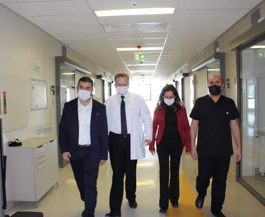 Yozgat Şehir Hastanesi Başhekimi Uz. Dr. Mustafa Kozan ve Servislerde yatarak tedavi gören Covid-19 Hastalarına Moral ve Motivasyon ziyaretinde bulundu.