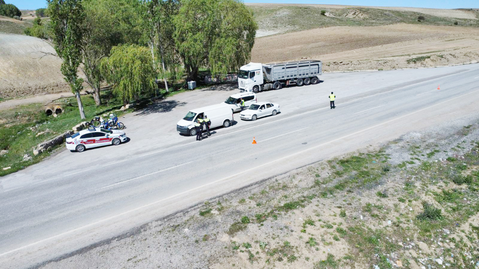 Yozgat İl Jandarma Komutanlığı trafik jandarması ekipleri, Yozgat-Çalatlı kara yolu üzerinde gerçekleştirilen denetimde, trafik kurallarını ihlal eden sürücüleri dron ile tespit ederek cezai işlem uyguladı.
