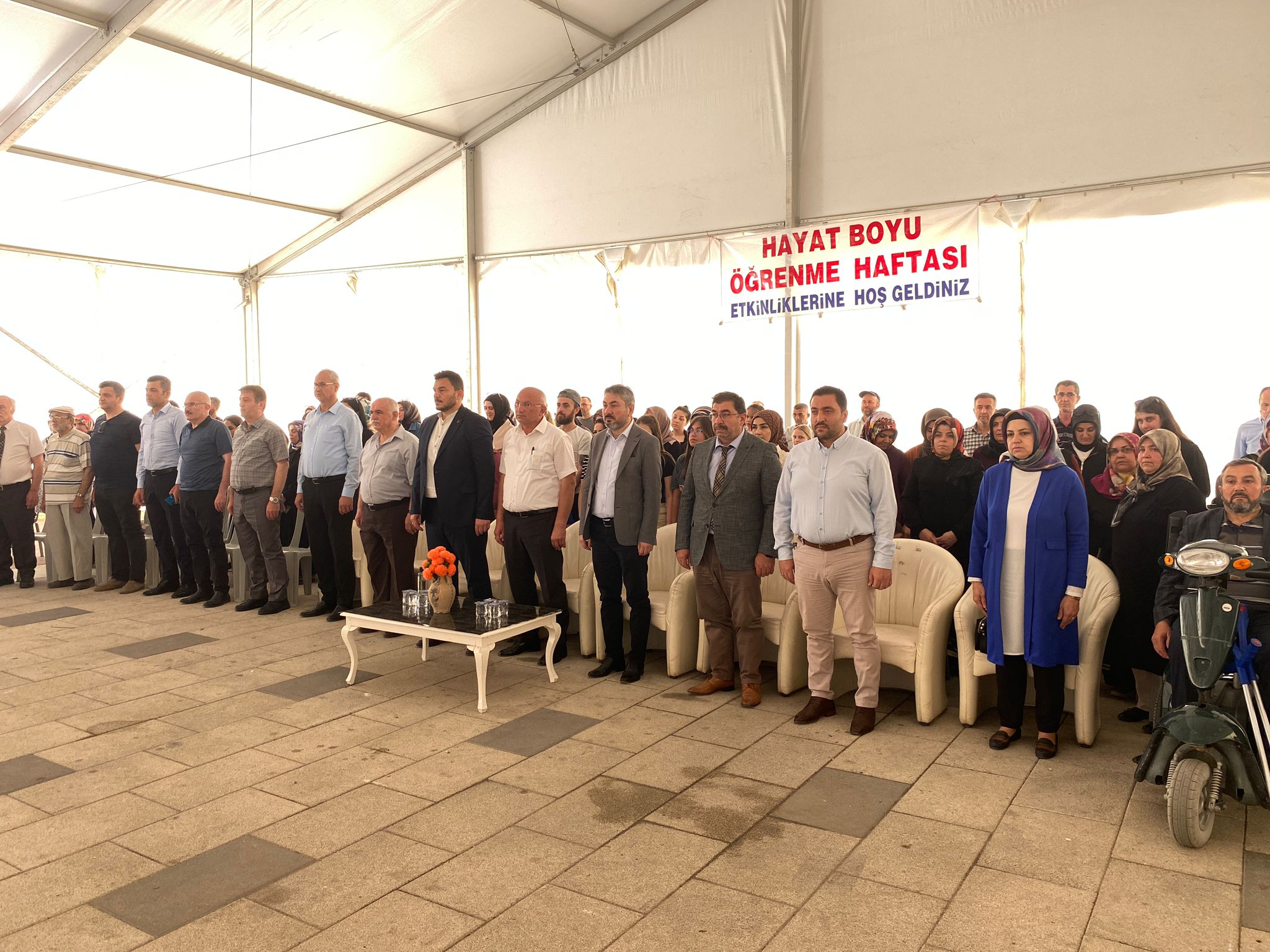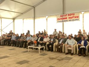 Şakir Efendi Meydanı’nda gerçekleştirilen programa, İlçe Milli Eğitim Müdürü Musa Öcal, belediye başkan yardımcısı, daire müdürleri, davetliler ve Halk Eğitim Merkezindeki kursiyerler katıldı. Program, saygı duruşu ve İstiklal Marşı’nın okunmasıyla başladı. Açılış konuşmasını İlçe Milli Eğitim Müdürü Musa Öcal yaptı.