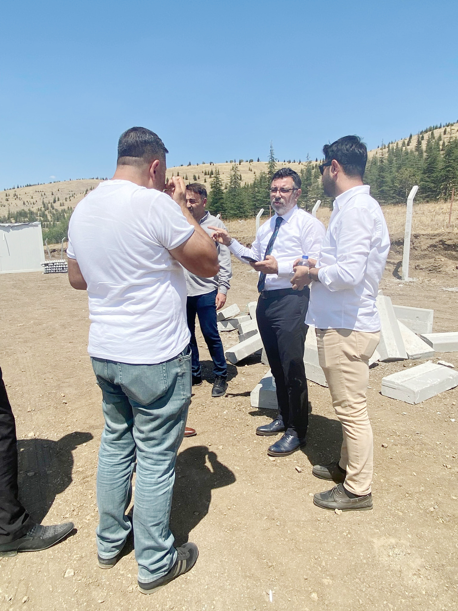 Yerköy Belediye Başkanı Fatih Arslan, Beyazıtoğlu Çiftliği sınırları içerisinde yapımı devam eden hayvan barınağında incelemelerde bulundu.
