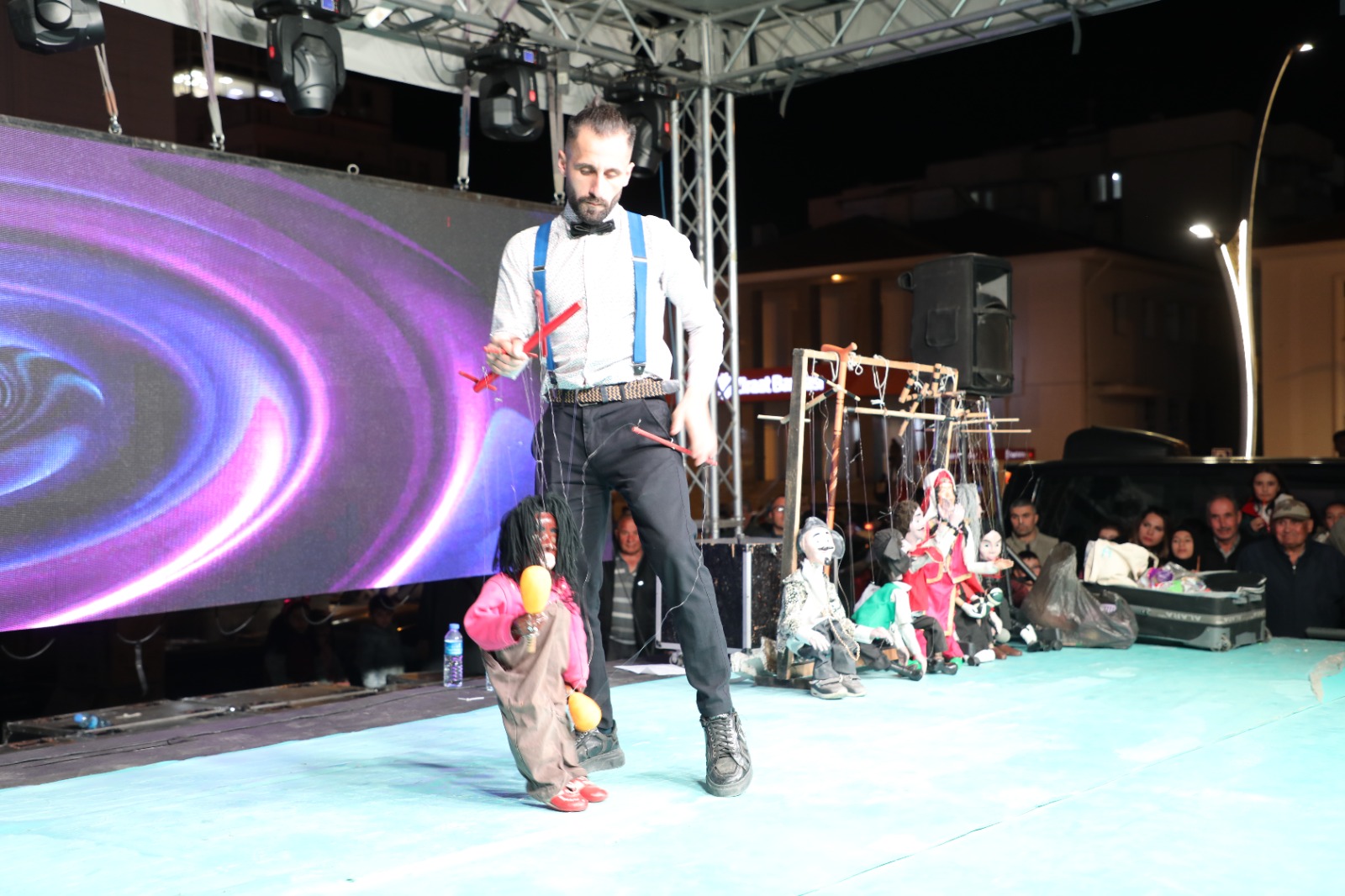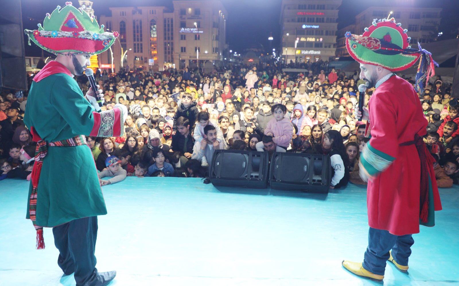 Hacivat Karagöz ve kukla gösterilerin yanı sıra anne ve babaların sahnede çocuklarıyla beraber oynadıkları birbirinden güzel oyun ve yarışmalar gecenin en eğlenceli anları oldu. Cumhuriyet Meydanındaki etkinlik gece geç saatlere kadar devam etti. / Haber Merkezi