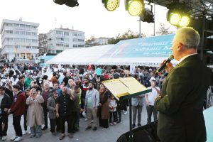 Belediye Başkanı Dr. Kazım Arslan programın açılış konuşmasında; “Göreve başladığımız ilk gün siz değerli hemşehrilerimizle beraber olalım, birlikte iftar edelim, birlikte konuşalım, görüşelim, dertleşelim istedik. İnşallah çok güzel sosyal programlarımız olacak. Kültür programlarımız olacak. Ama sadece sosyal programlarda, kültür programlarla kalmayacağız. Yozgat’ın ihtiyacı olan, Yozgat’ın yaşanabilir bir şehir olması noktasında yaşanmak istenen, gezinmek istenen bir şehir olması noktasında neler yapılması gerekiyorsa hep birlikte el birliğiyle yapacağız. Belediye başkanlığımız hepimize hayırlı olsun. Çünkü bu seçimi, Kazım Arslan kazanmadı, bu seçimi halk kazandı” dedi.