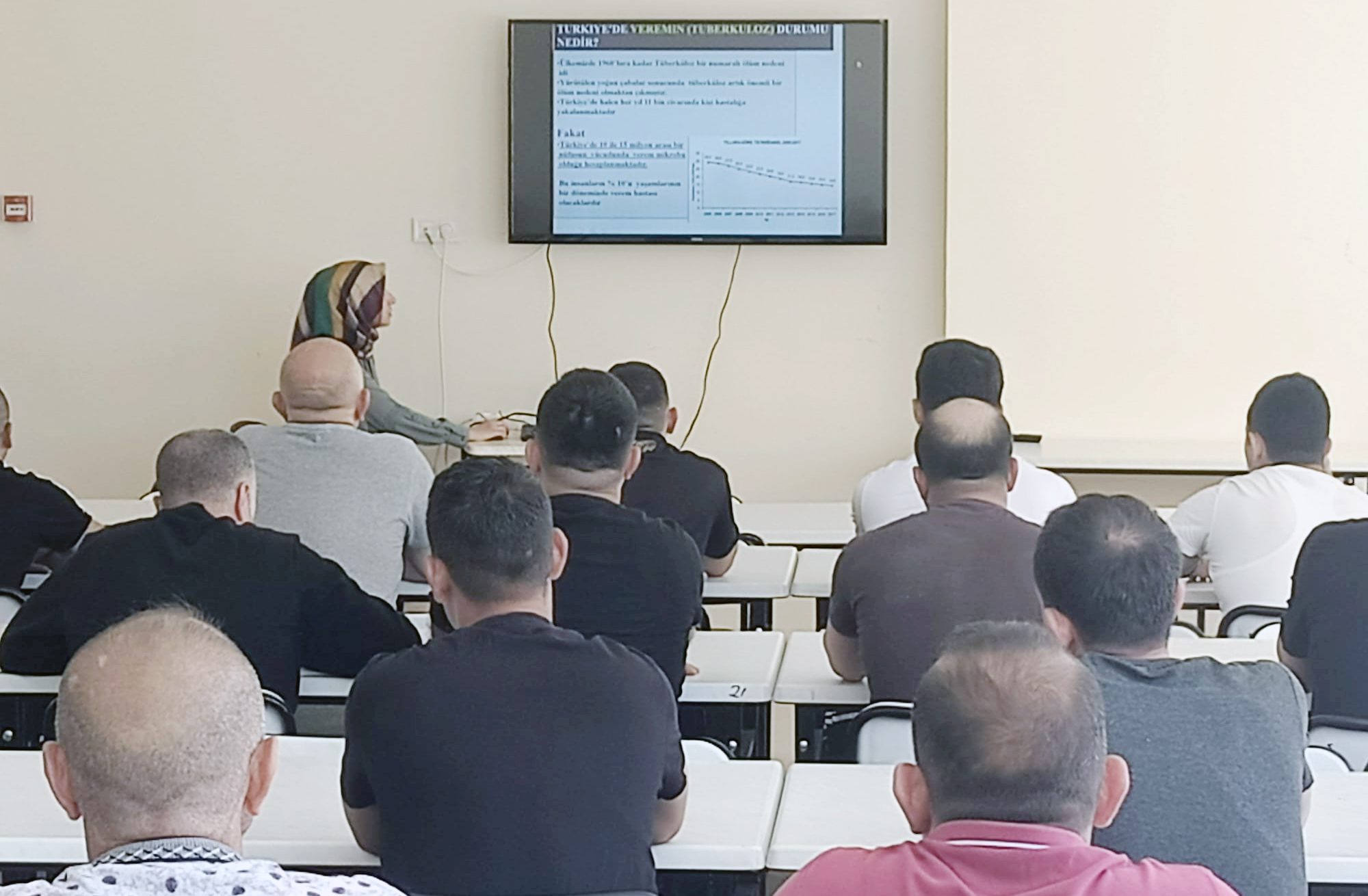 Merkez TSM Bulaşıcı Hastalıklar ve Eğitim Birimi koordinesinde gerçekleşen etkinlikte, Dr. Fatma Parlak ve Sağlık Memuru Adnan Azmaz yönetiminde, Yozgat Açık Ceza İnfaz Kurumu personeli, tutuklu ve hükümlülere yönelik bulaşıcı hastalıklar hakkında bilgilendirme yapıldı.