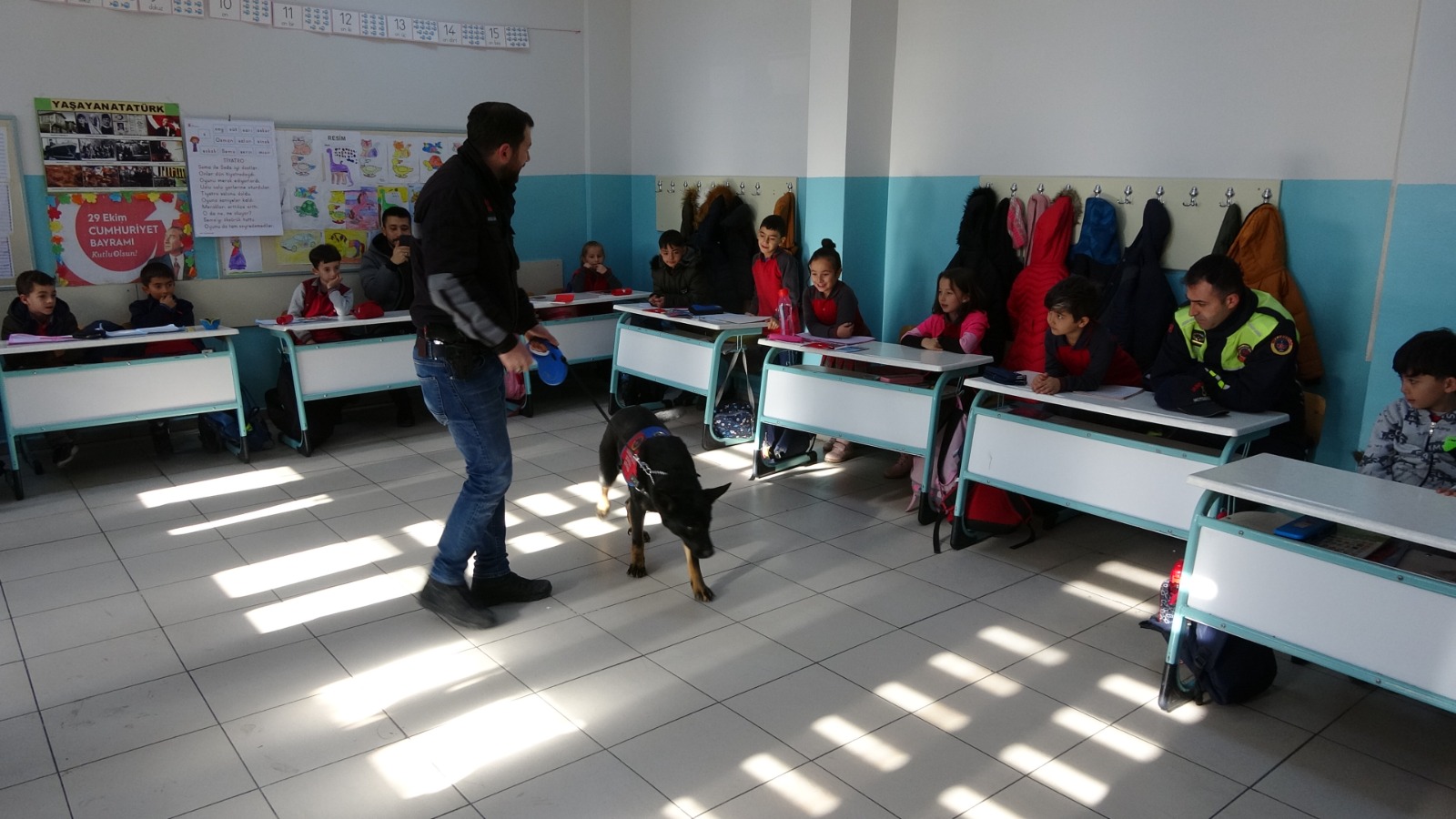 Sınıf öğretmeni Hakan Ertaş, etkinliklerle öğrenilen harflerin öğrencilerde daha kalıcı olduğunu söyledi. Ertaş, “Biz bugün ‘J’ harfini çocuklarımıza öğrettik. Yozgat İl Jandarma Komutanlığında görevli memur arkadaşlar sınıfımızı ziyaret ettiler. Şu ana kadar ki bütün harflerimizin her birini etkinlikle öğrendik. Sayın valimizi ziyarete gittik, velilerimiz sınıfımızda yarışmalar düzenledi. Sınıfımıza motor ile geldik, horoz getirdik. Farklı etkinliklerle harfleri çocuklara hem görerek hem yaşayarak hem de hissederek öğretmeye çalıştık. Projemizin ismi her harf bir etkinlik projesi. Bu etkinliklerle harfler çocukların aklında daha kalıcı bir halde alıyor. İnşallah olumlu sonuçlar alacağız.” diye konuştu. / Seher ÇAYLAK