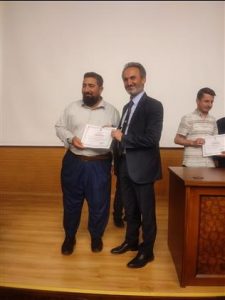 Müftü Gülden, eğitimin hayırlara vesile olması dileklerinde bulunarak; kursiyerlerin katılım belgelerini takdim etti.