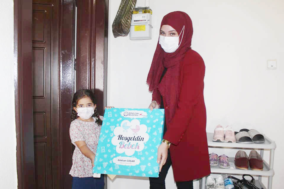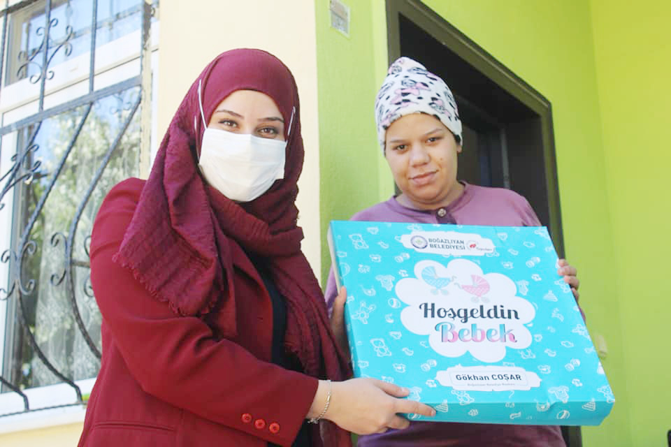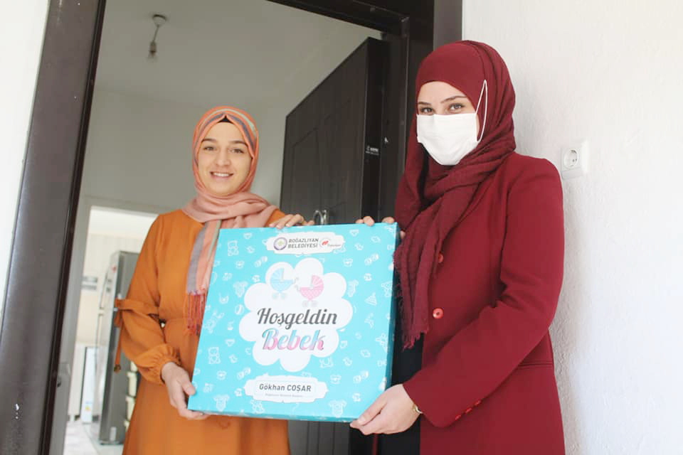 Boğazlıyan Belediyesi ekipleri tarafından başlatılan proje kapsamında “Eldiven, Ağız Mendili, Battaniye, Dış Zıbın, İç Zıbın, Patikli Pantolon, Badi, Atlet, Önlük, Şapka” bebek ürünlerinin yer aldığı hediye paketleri hazırlanarak pandemi kurallarına uygun bir şekilde evlere bire bir ziyaretler geçekleştiriliyor ve ailelere teslim ediliyor.