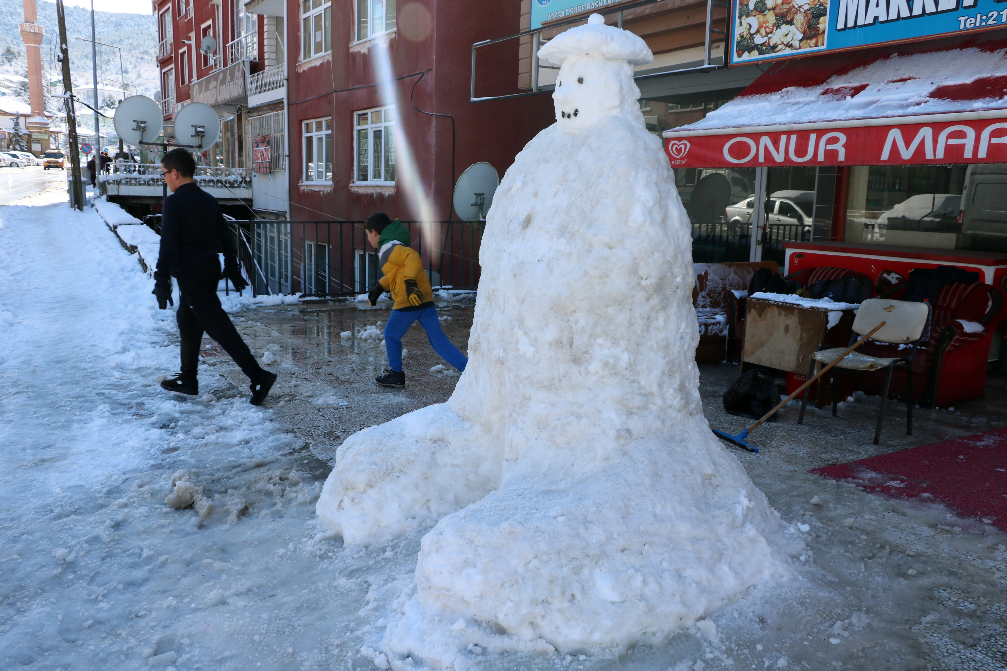 Onur Efe ise “Kar iki gündür çok güzel yağdı, biz de kartopu oynayıp kardan adam yaptık. İki metre boyunda bir kardan adamımız oldu. Bunu yaparken babamdan yardım aldım. Herkes hatıra fotoğrafı çektiriyor. Biz de karın sevincini yaşıyoruz” şeklinde konuştu.