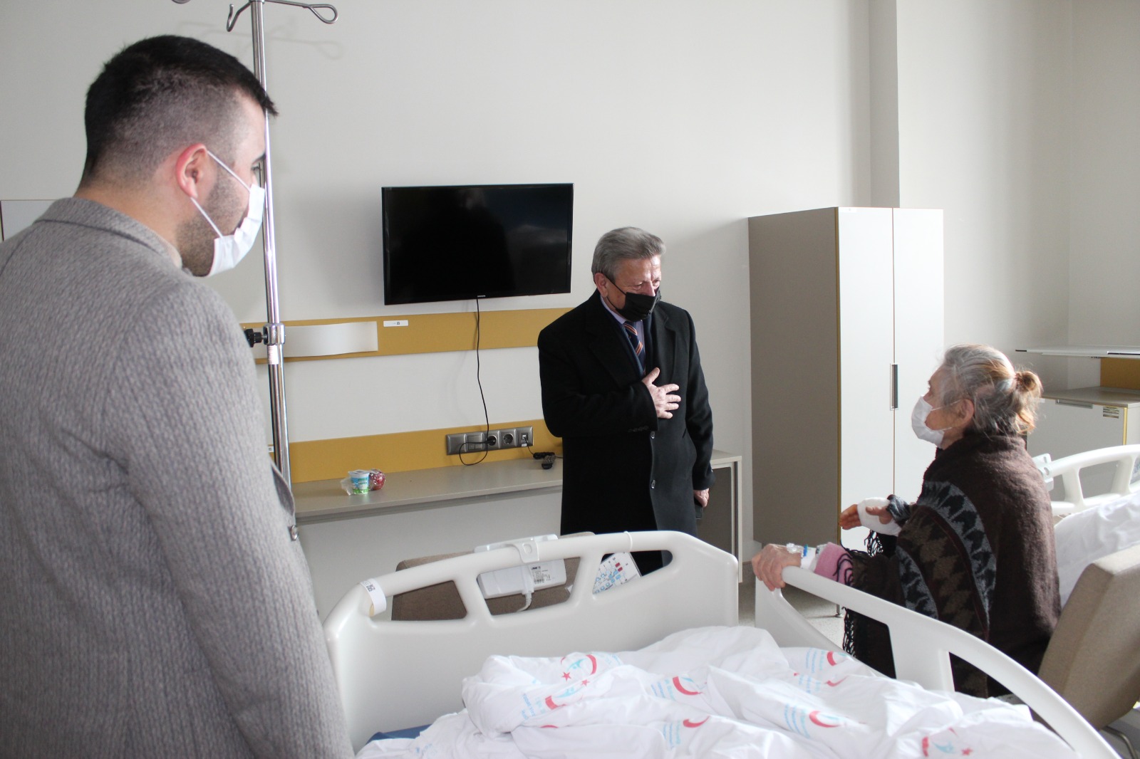 AK Parti Yozgat İl Başkanı Yusuf Başer, beraberinde İl Başkan Yardımcısı Suat Tinel, Mehmet Taşdemir, Hacı Şahbaz ile birlikte Yozgat Şehir Hastanesinde yatarak tedavi gören hastaları ziyaret ederek geçmiş olsun dileklerinde bulundu.
