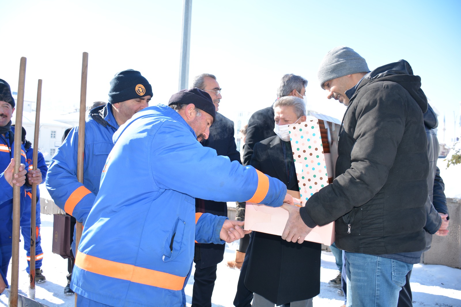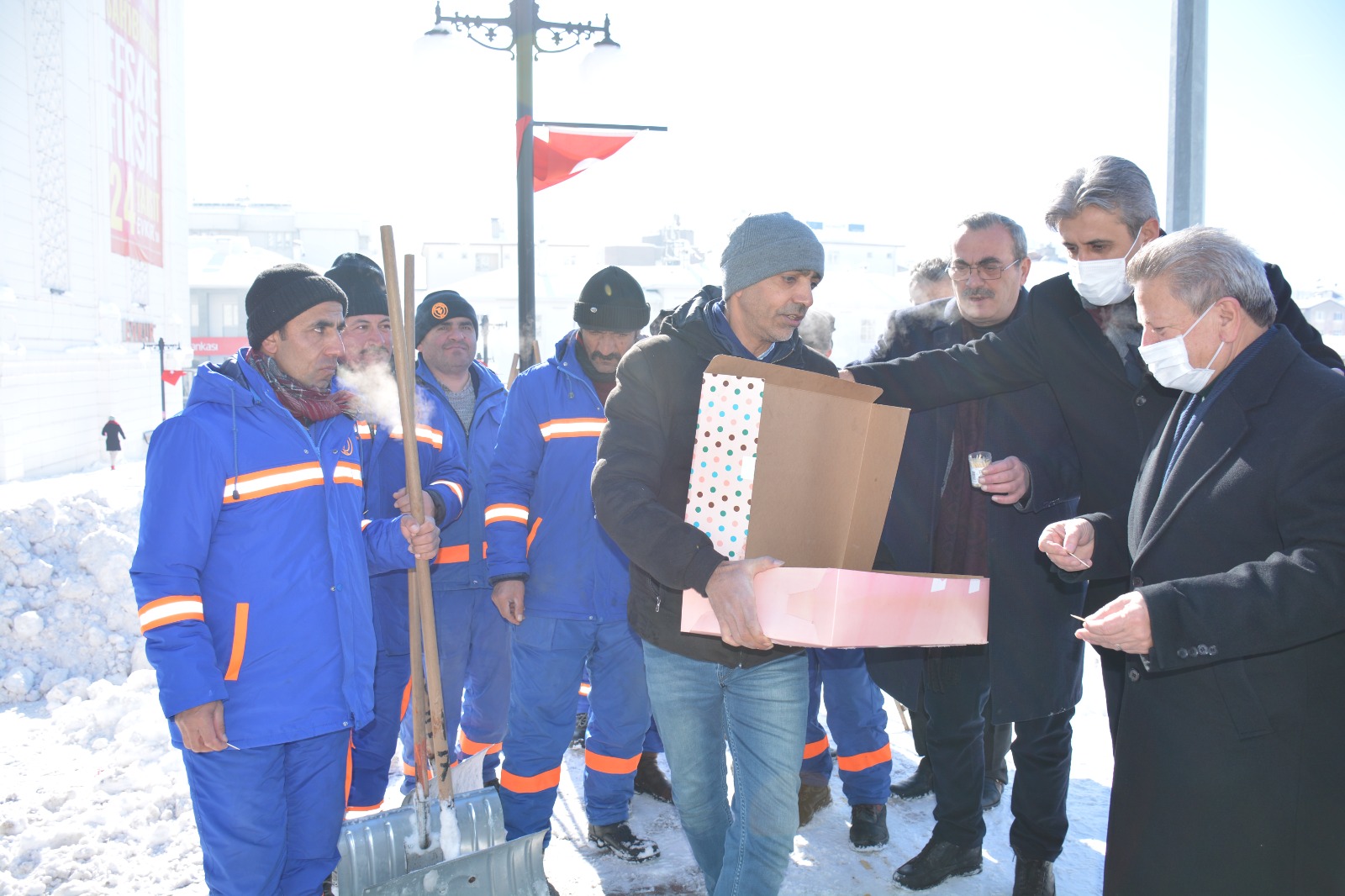 il Başkanı Başer’den karla mücadele ekibine tatlı ikramı