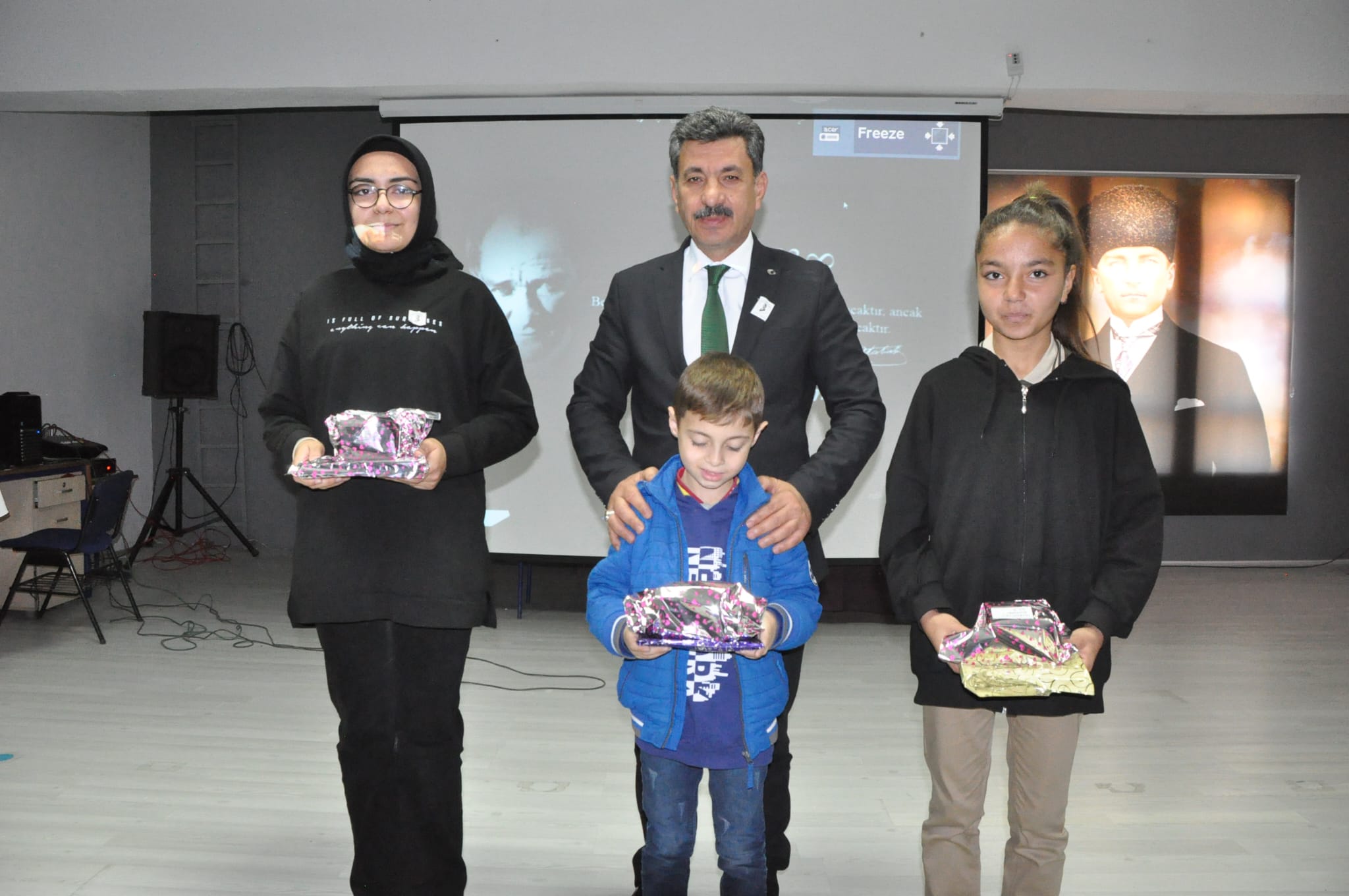 Törenin sonunda, Kaymakam Muharrem Coşkun, Belediye Başkanı Ferhat Yılmaz ve Cumhuriyet Başsavcısı Barış Çetin tarafından yarışmalarda dereceye giren öğrencilere çeşitli hediyeler verildi.