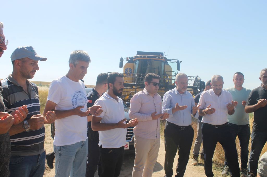 Yapılan hasat işlemlerini yakından takip etmek için ziyaret eden Kaymakam Ahmet Nuri Demir, İlçe Müftüsü Zühdü Elveren’in yaptığı dua ile biçerdövere binerek hasat işleminde bizzat bulundu. Kaymakam Demir, çiftçilere hayırlı, bol ve bereketli kazançlar diledi.