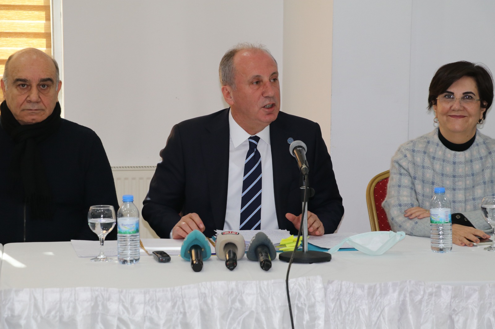 Muhalefet partilerinin henüz masadaki oturma düzenini çözemediklerini söyleyen İnce, “ Önce kim konuşacak, masanın kenarına, köşesine, ortasına kim oturacak onu çözemediler. Muhalefet önümüzdeki günlerde milletimize bir reçete sunacak ama henüz masadaki oturma düzenini çözemediler. Önce kim konuşacak, masanın kenarına, köşesine, ortasına kim oturacak, onu çözemediler. Allah’tan yeni kurulmuş bir parti ekonomi programı hazırlamış da şimdi oturup 6 parti bunu tartışacaklarmış. Yani 100 yıllık parti ne işe yarar, doğrusu anlamış değilim. Onun hazırladığı ekonomik programın içinde de emin olun üretim yok, çiftçinin desteklenmesi yok, gelecek yok, bilim yok, hukuk yok, liyakat yok. Ne var, ‘ben daha iyi borç bulurum’ politikası. Yazık, günah. Onun için biz Memleket Partisi olarak ‘ne Cumhur ne Millet, tek yol Memleket’ diyoruz. Tek başımıza iktidar olmak için yollara düştük, bunu başaracağız, buna inanıyorum.” şeklinde konuştu.