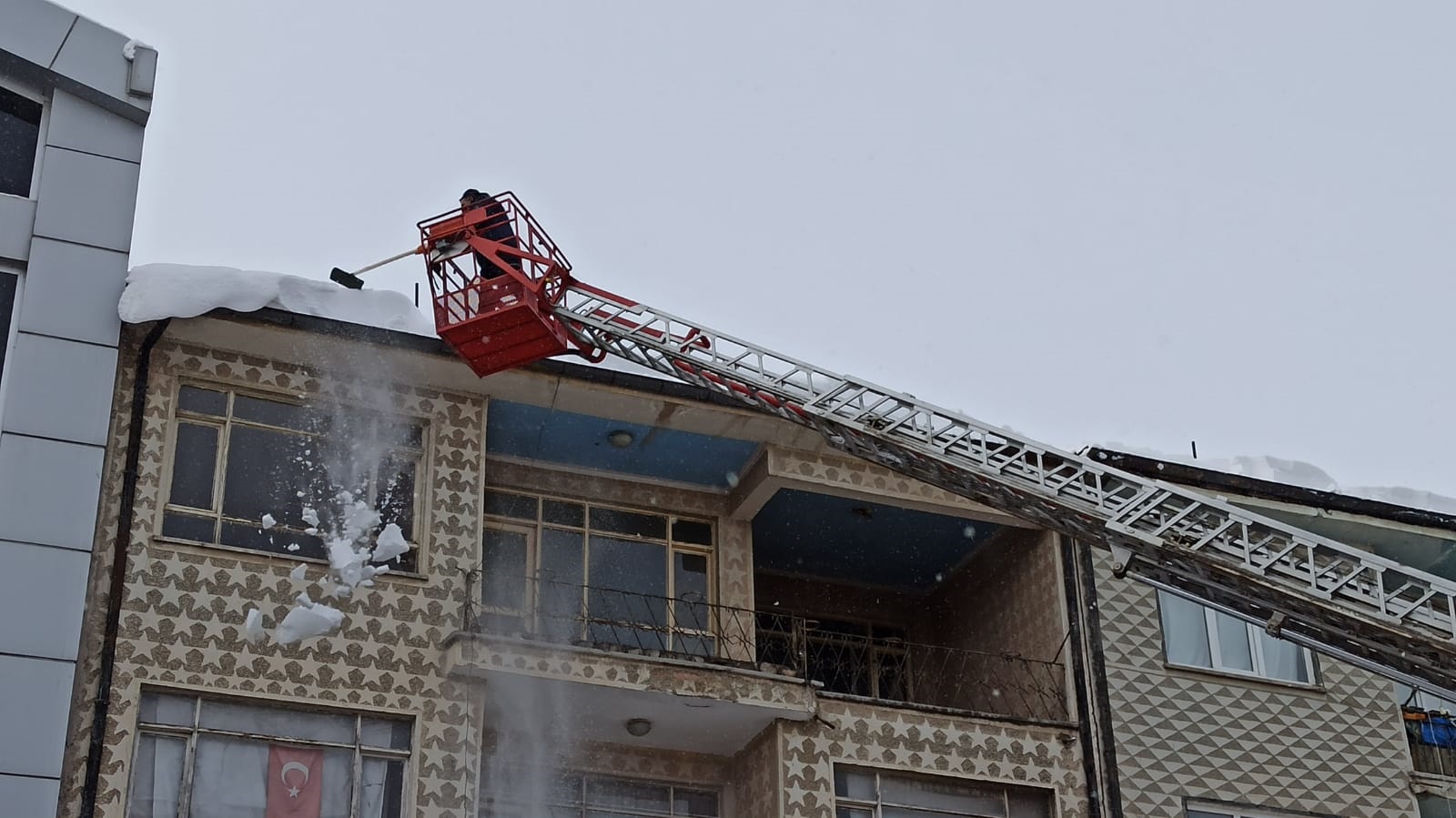 İtfaiye ekipleri çatılardaki kar sarkıtlarını temizledi