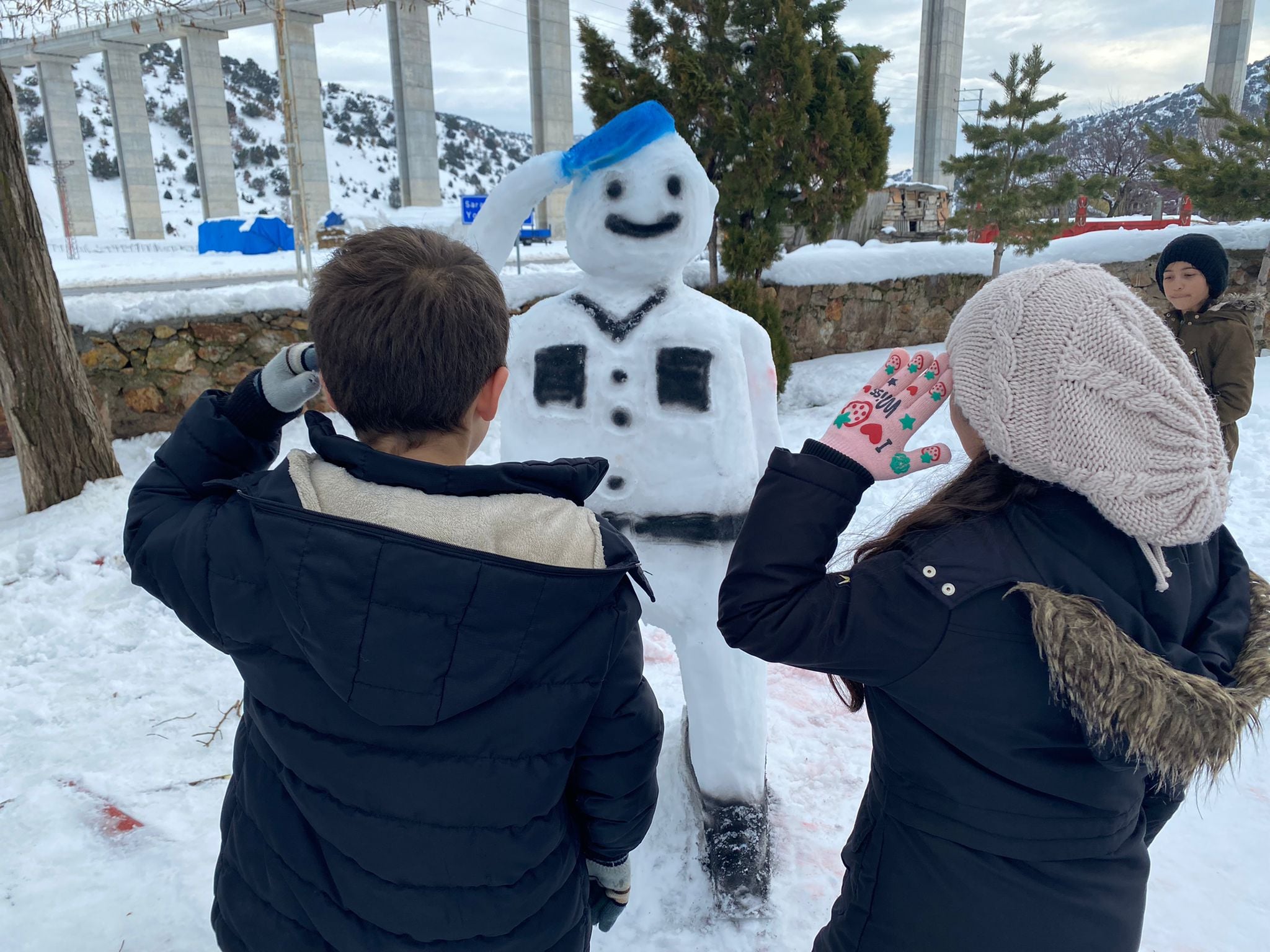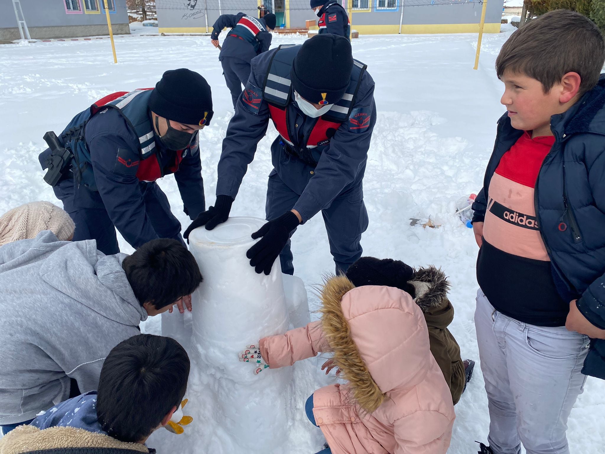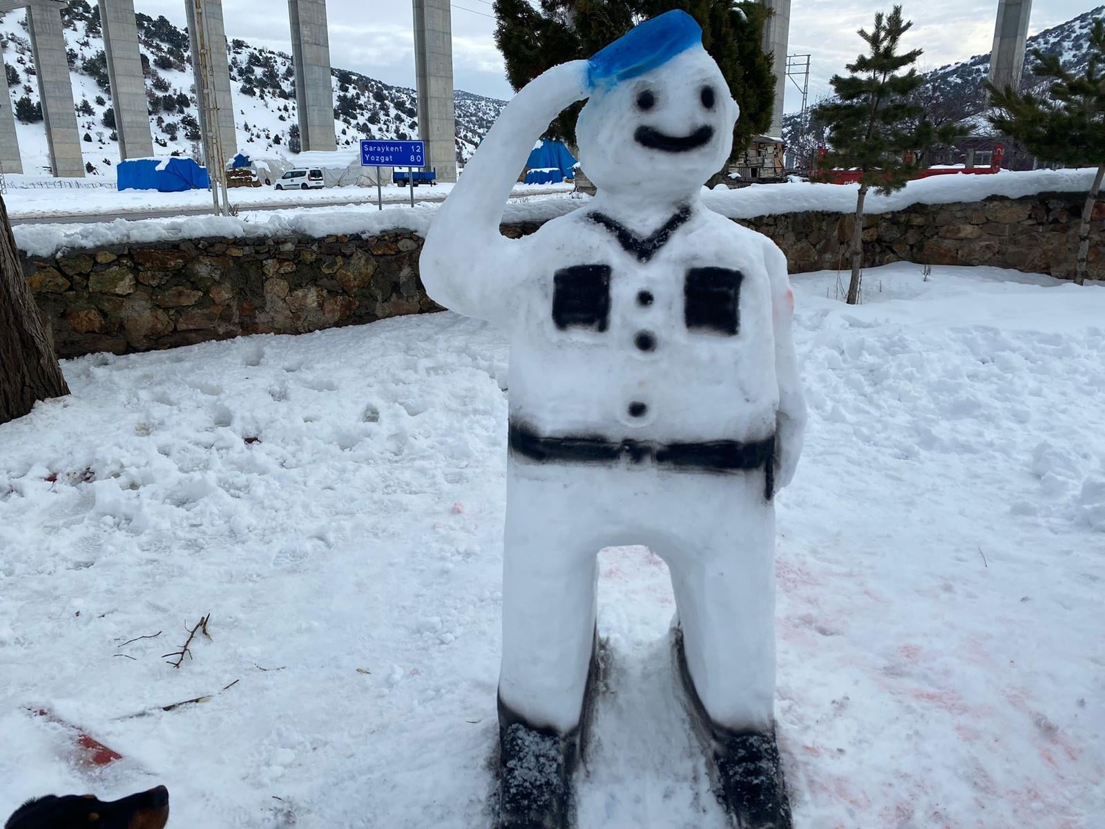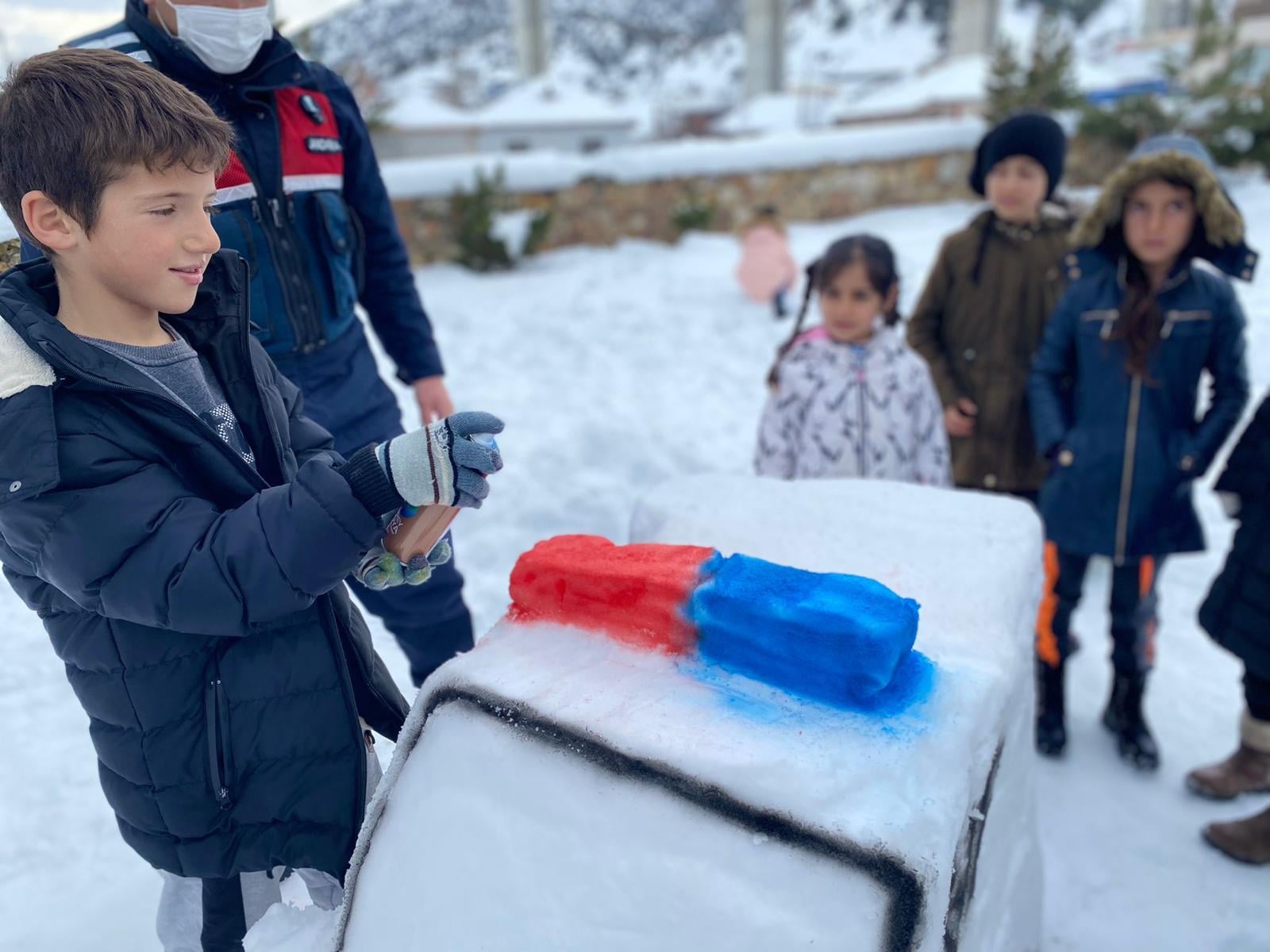 Ülke genelinde olduğu gibi Yozgat’ta etkili olan kar yağışı herkesi olduğu gibi en fazlada çocukları sevindirdi. Saraykent İlçe Jandarma Komutanlığı ekipleri, çocuklarla birlikte kardan asker ve jandarma aracı yapıp çocukların sevincine ortak oldu.