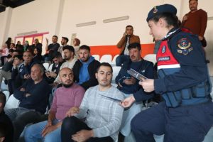 Yozgat İl Jandarma Komutanlığı, Aile içi şiddetle mücadele kadın ve çocuk kısım amirliği tarafından Sarıkaya’da düzenlenen voleybol turnuvasında vatandaşları kadına şiddet konusunda bilgilendirdi.