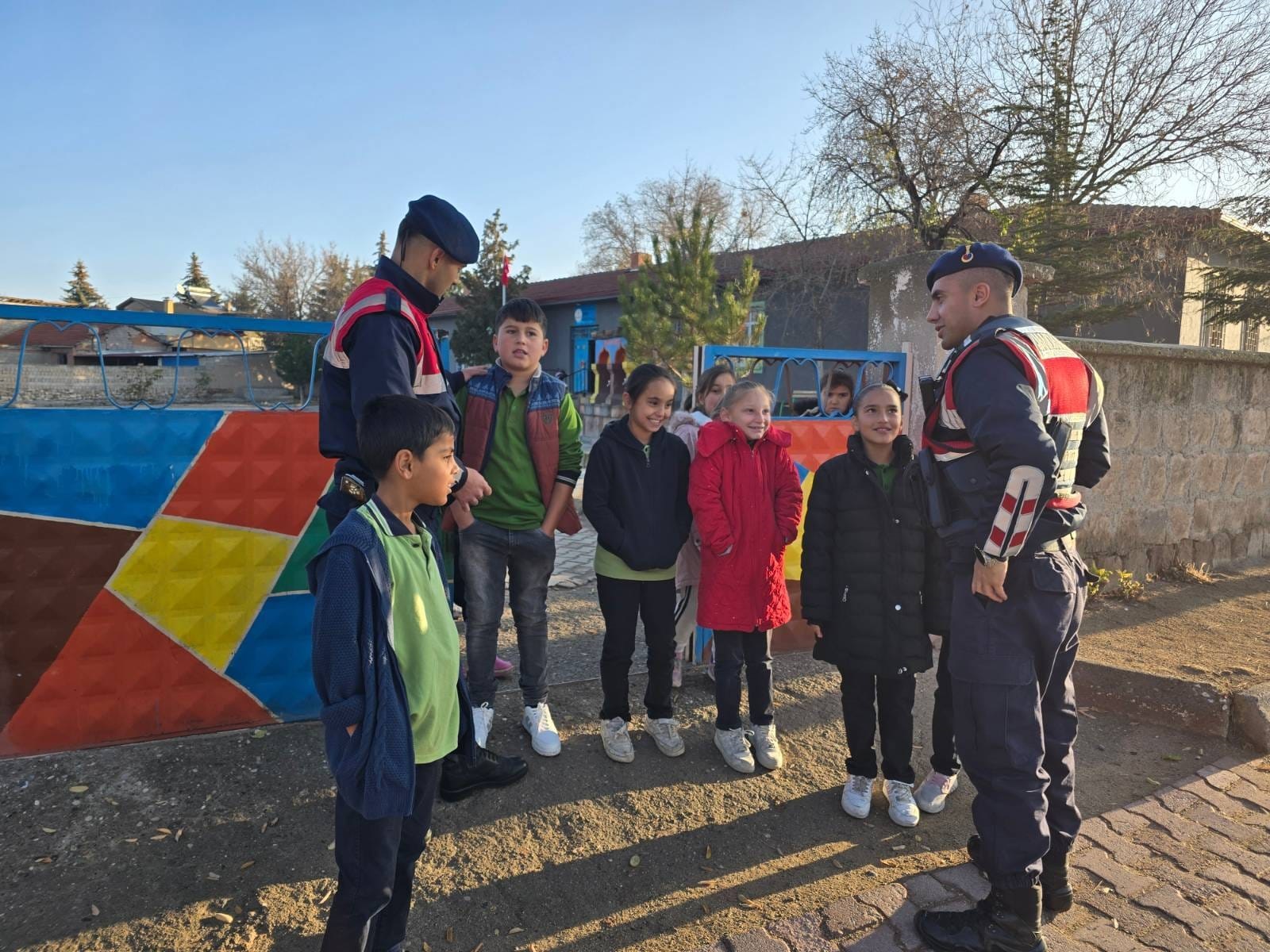 Jandarma ekipleri, öğrencilerin güvenliğinin her şeyden önce geldiğini belirterek çocuklara trafik kuralları ve kişisel güvenlik konusunda bilgilendirmelerde bulundu.