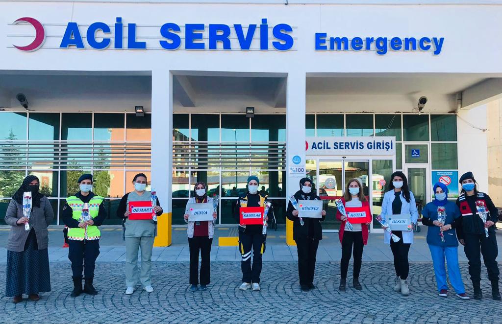 Yozgat İl Jandarma Komutalığı tarafından yapılan açıklamada;“8 Mart Dünya Kadınlar Günü” kapsamında İl Jandarma Komutanlığı Aile İçi Şiddetle Mücadele ve Çocuk Kısım Amirliği personelince sorumluluk bölgesindeki Yerköy Organize Sanayi bölgesindeki Tekstil fabrikasında çalışan kadınlarımız ile Çekerek İlçe Jandarma Komutanlığı personelince pandemi sürecinin bütün yükünü omuzlarında taşıyan kadın sağlık çalışanlarımız Çekerek Şehit Harun Devlet Hastanesi Acil Servis Bölümünde ziyaret edilmiştir. Ziyaretlerimizde, fabrikada ve hastanede çalışan kadınlarımızın “8 Mart Dünya Kadınlar Günü” kutlanarak kendilerine karanfil takdim edilip ayrıca “KADES” uygulamasının tanıtımı yapılarak telefonlarına yüklenilmiştir.”denildi.