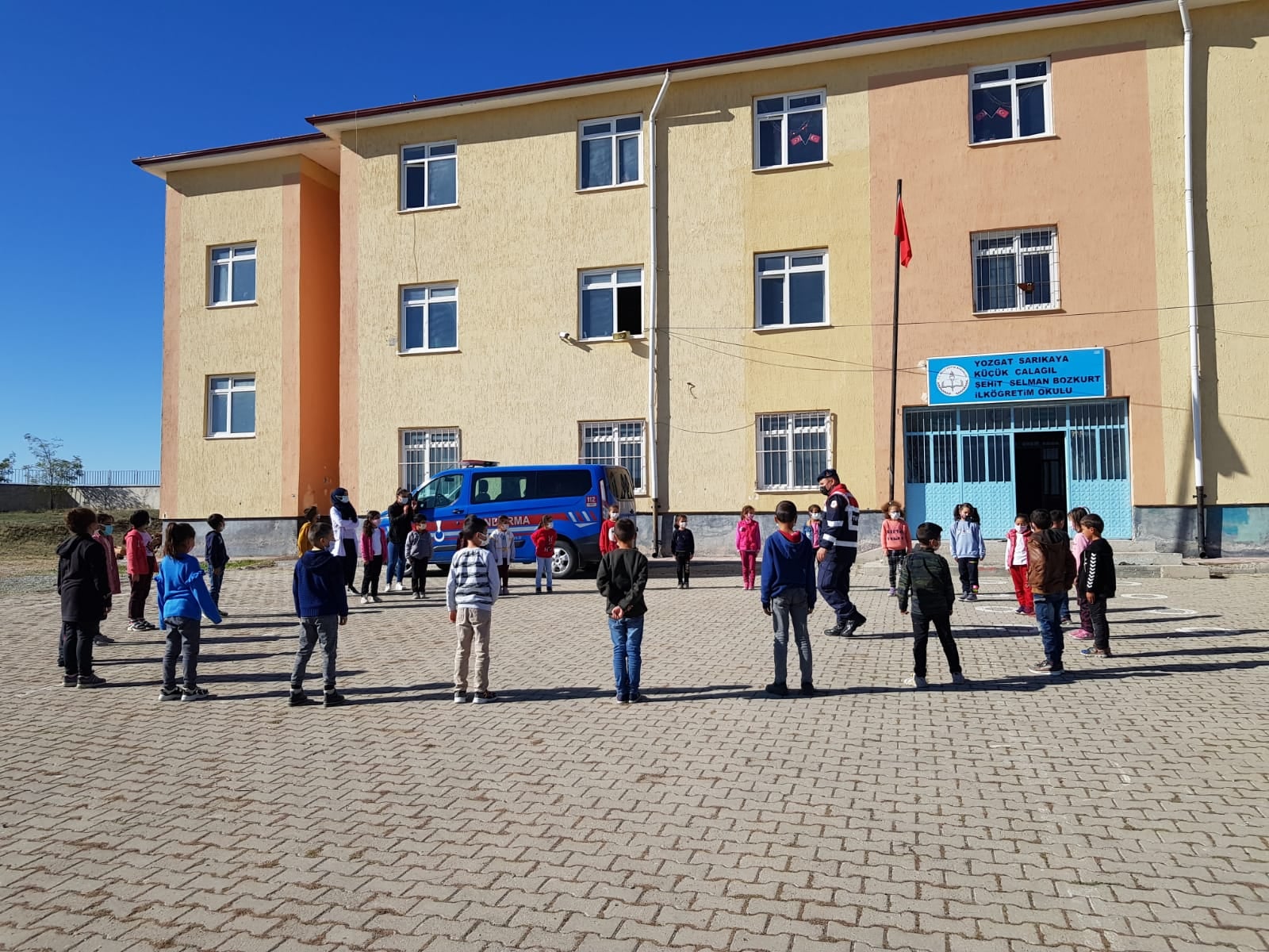 Sarıkaya İlçe Jandarma Komutanlığı ekipleri ilçeye bağlı Küçükçalağıl Köyü Şehit Selman Bozkurt İlköğretim Okulunu ziyaret ederek burada eğitim gören öğrencilere çocuk dergisi dağıtarak; trafik kuralları, ve Kovid-19 tedbirleri konusunda bilgilendirdi.