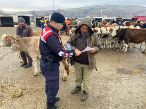 Yozgat İl Jandarma Komutanlığı, bölgede artan hayvan hırsızlıklarını engellemek amacıyla Sorgun ilçesinde hayvan pazarında vatandaşlara yönelik önemli bilinçlendirme çalışmaları başlattı.
