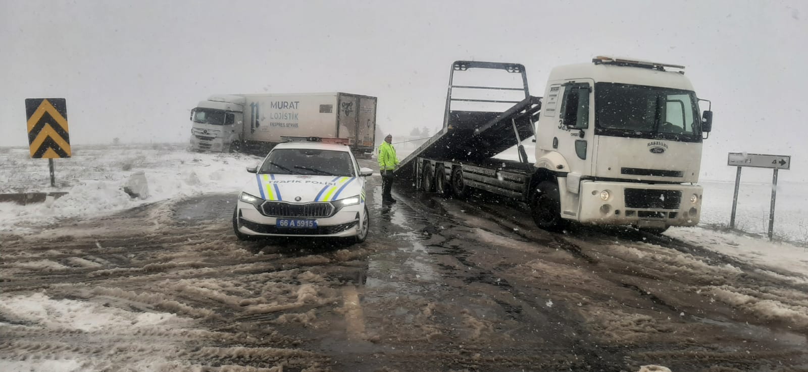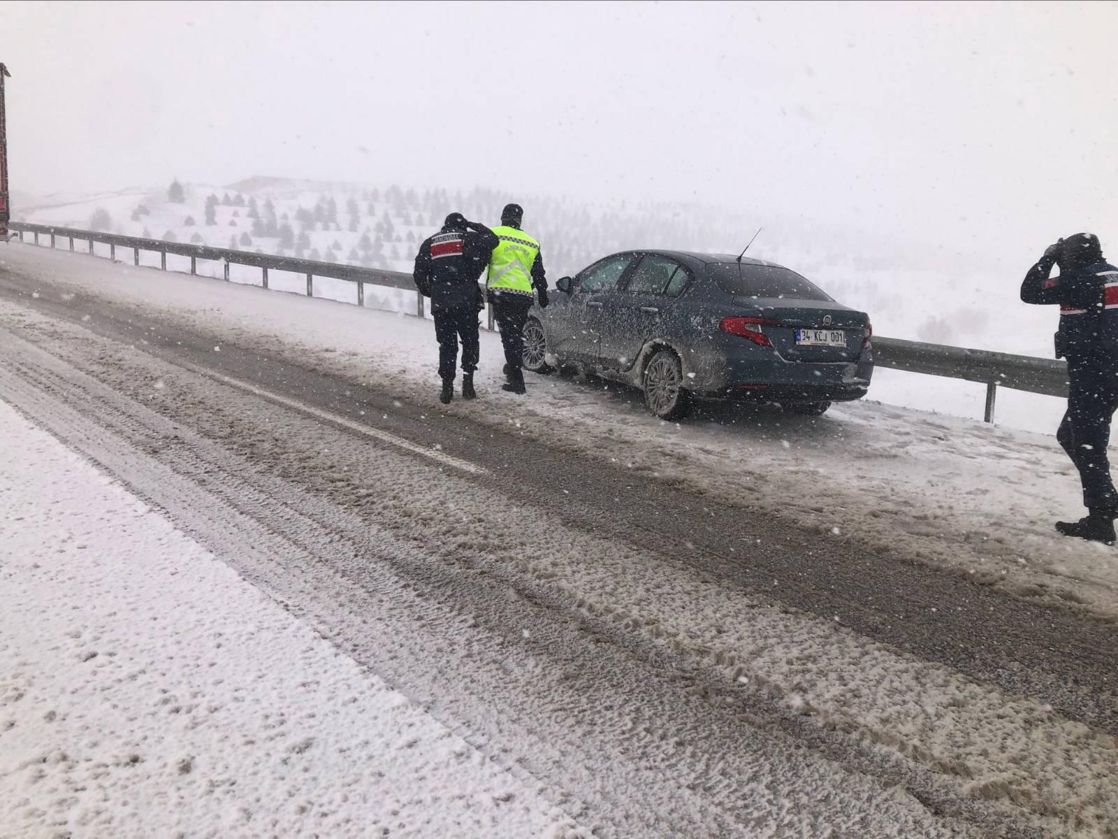 Yozgat İl Jandarma Komutanlığı ve ilçe jandarma komutanlıklarına bağlı trafik ekipleri, il genelinde etkili kar yağışı nedeniyle yolda mahsur kalan vatandaşlara yardım eli uzattı.