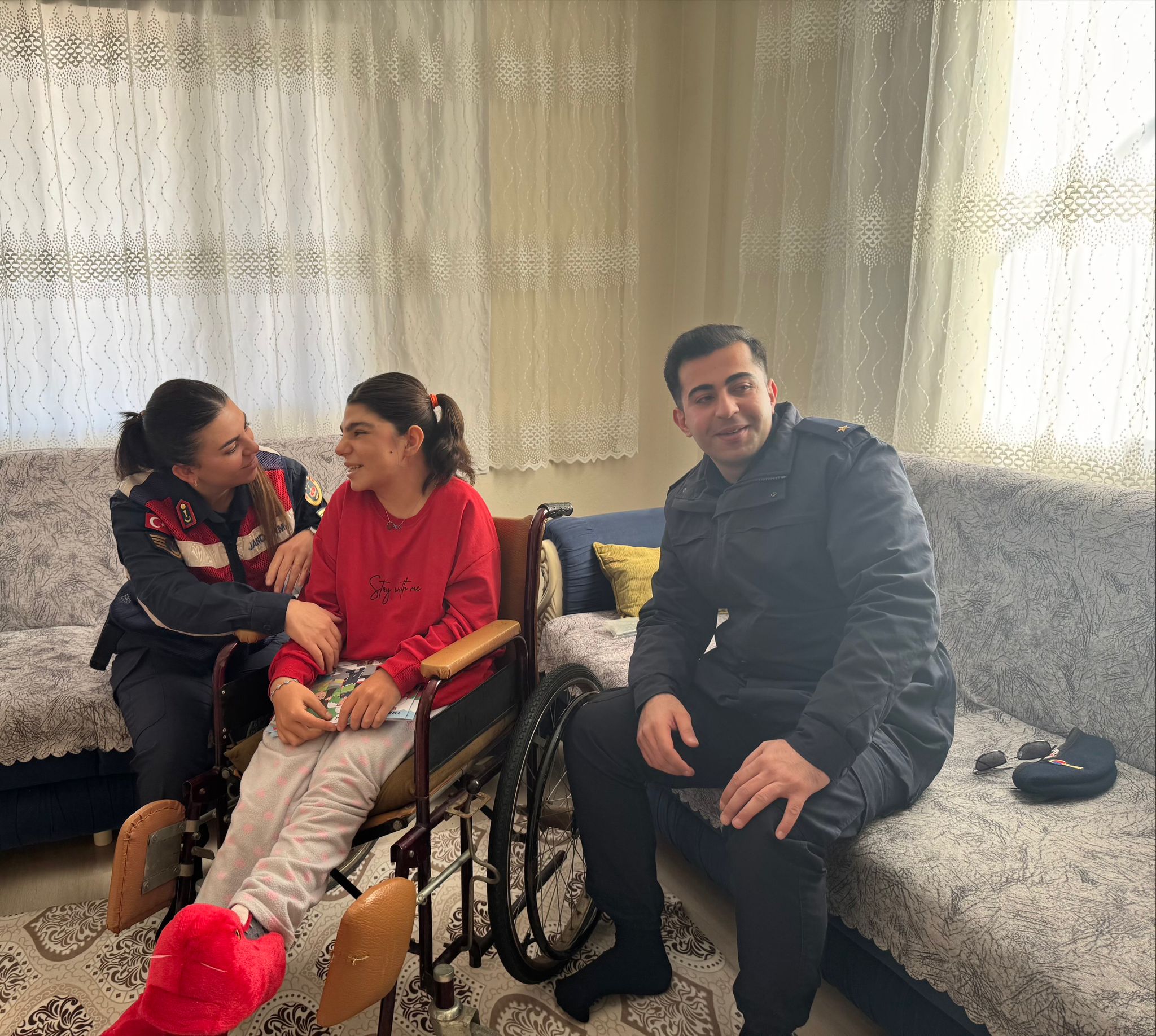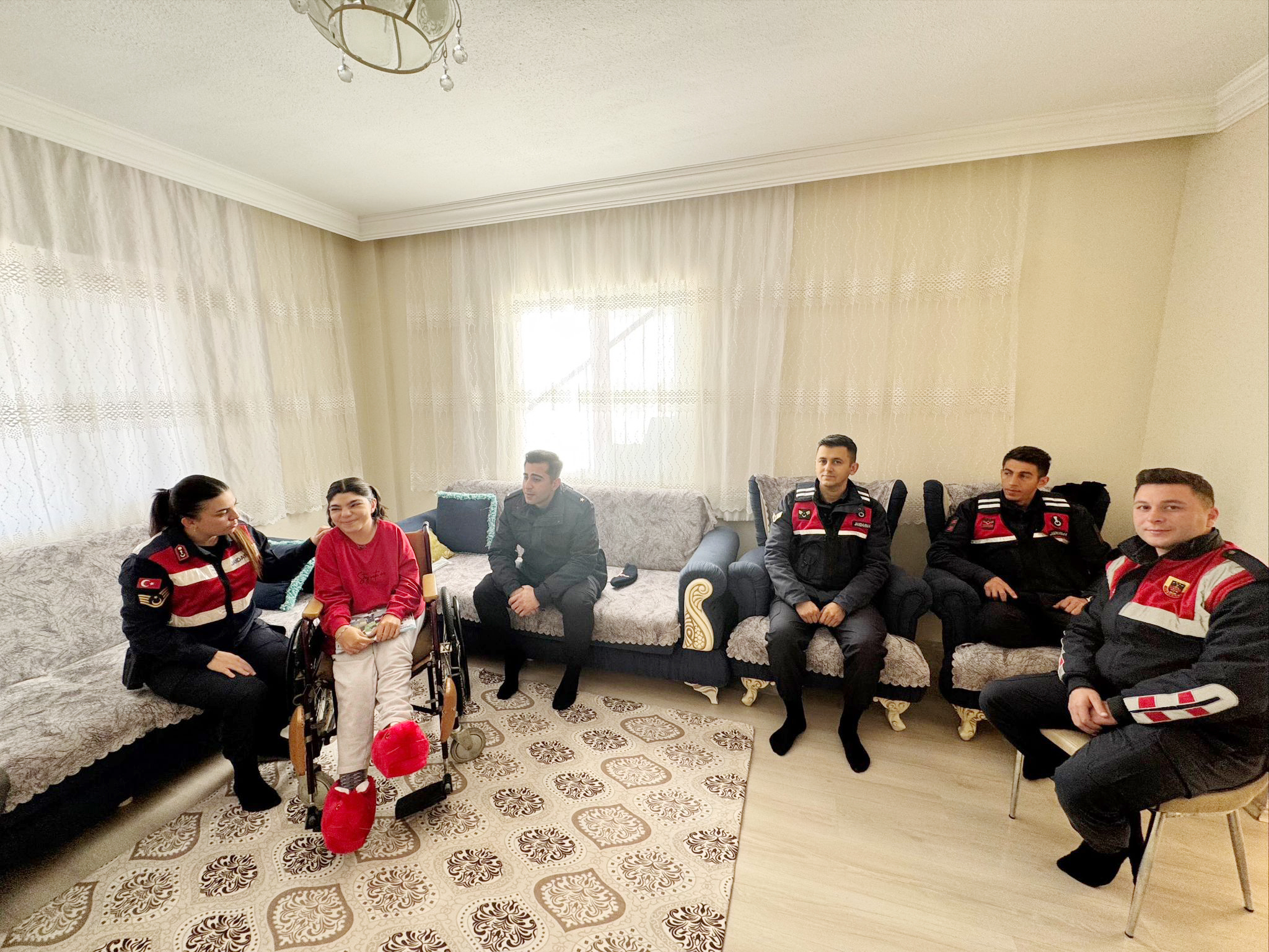 Kadışehri İlçe Jandarma Komutanlığı sorumluluk bölgesinde ikamet eden engelli bir kız çocuğu, jandarma ekipleri tarafından evinde ziyaret edildi.