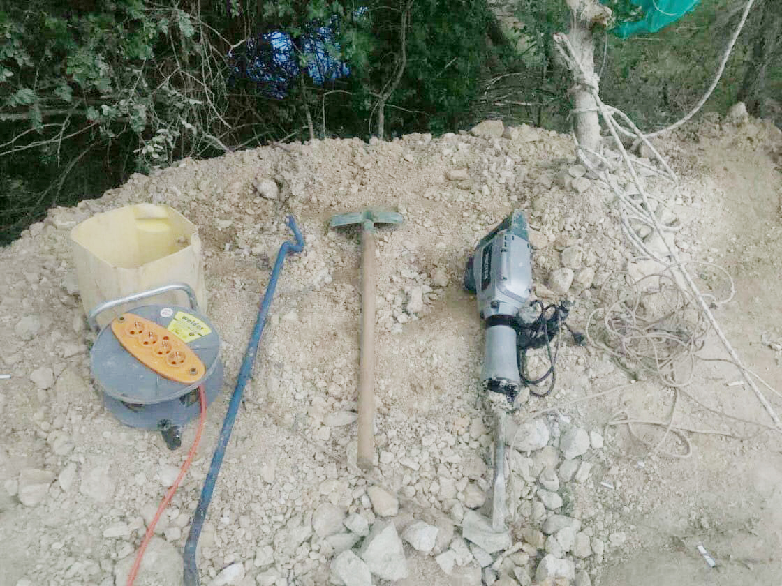 Gözaltına alınan şüphelilerin üzerinde ve kazı bölgesinde 1 adet dedektör, 2 adet arama çubuğu, 1 adet hilti, 3 adet kürek, 1 adet kazma, 1 adet sökü demiri ve 1 adet jeneratör ele geçirildi.