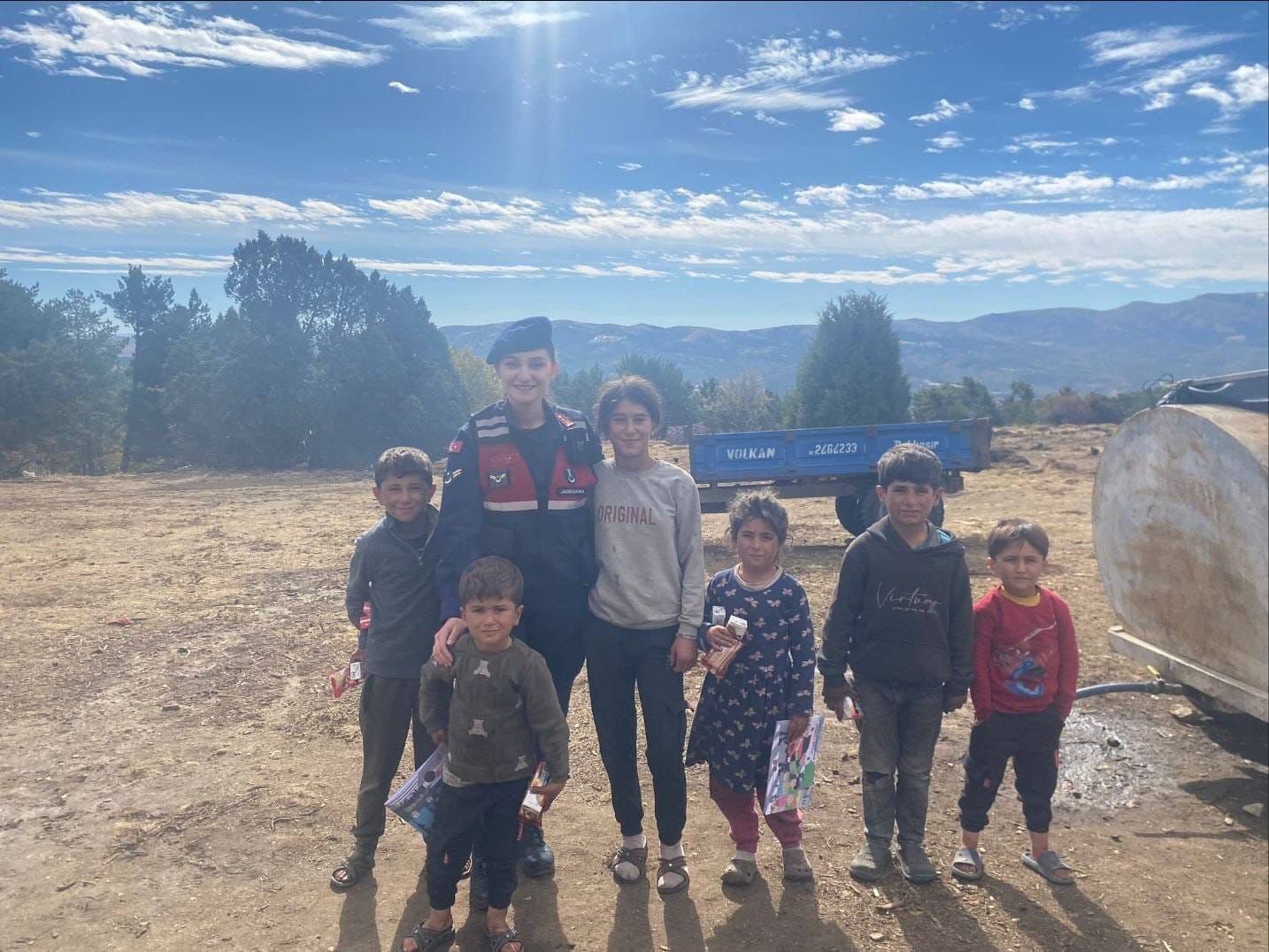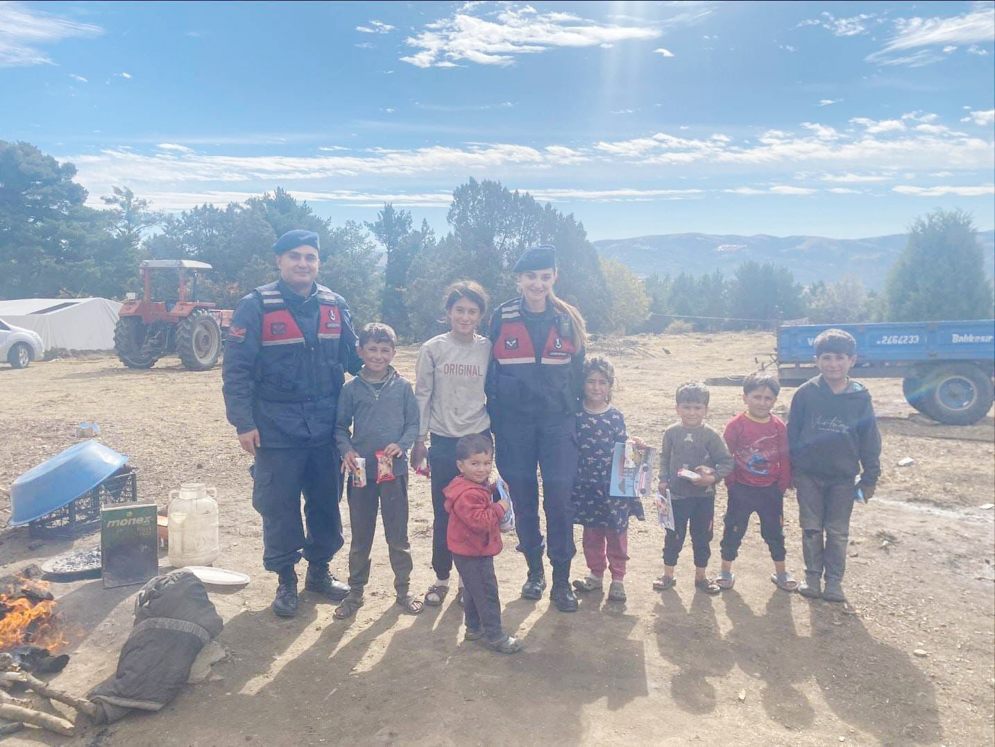 Ziyaret kapsamında, bölgede çalışan mevsimlik işçilerin çocuklarıyla da bir araya gelen jandarma personeli, çocuklara Jandarma boyama kitabı hediye etti ve çeşitli ikramlarda bulundu.