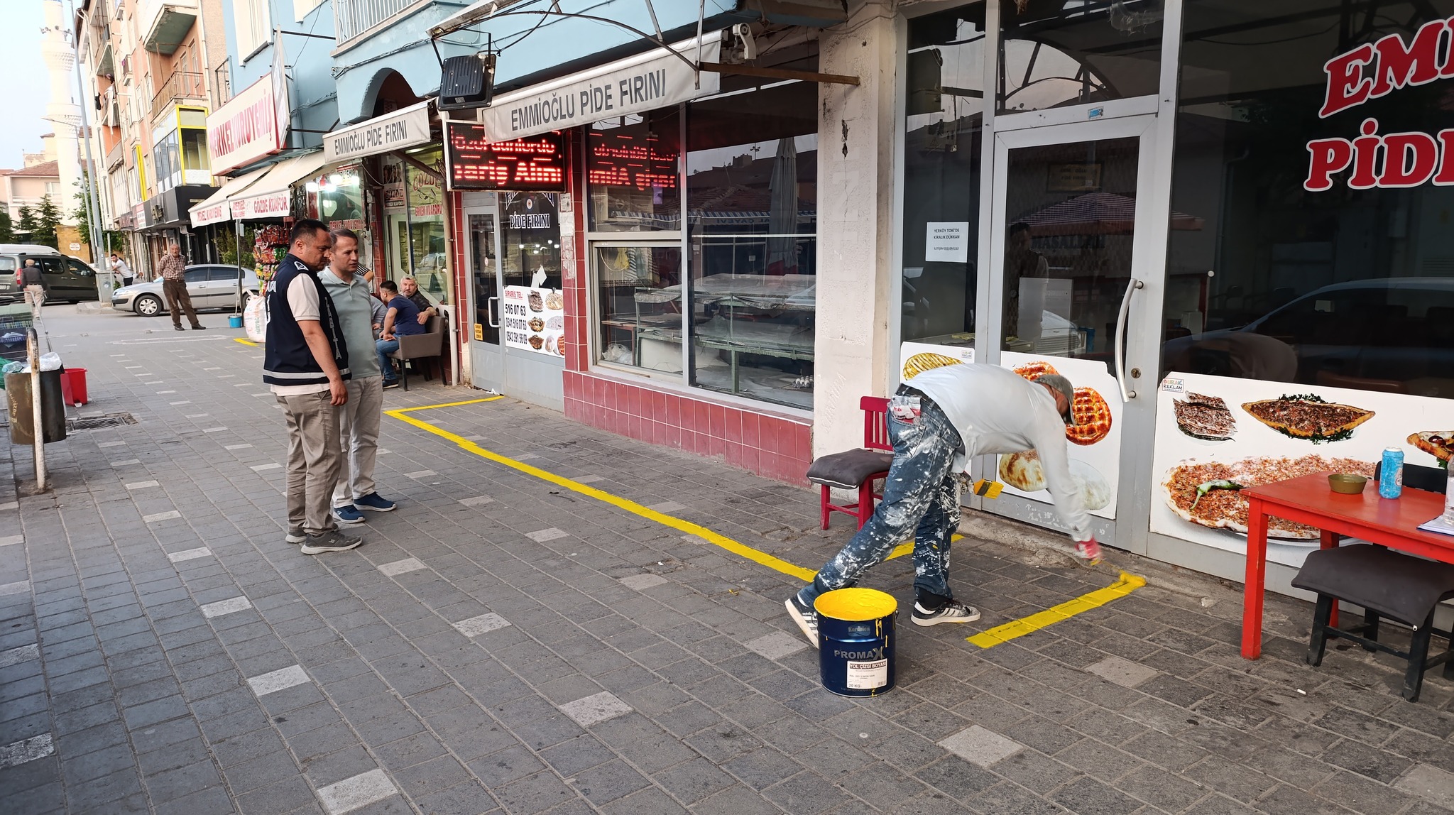 Belediye Zabıta Müdürlüğü ekipleri tarafından yürütülen çalışmalarda, 5326 sayılı Kabahatler Kanunu çerçevesinde iş yerlerinin önlerine sarı çizgiler çizilmeye başlandı.