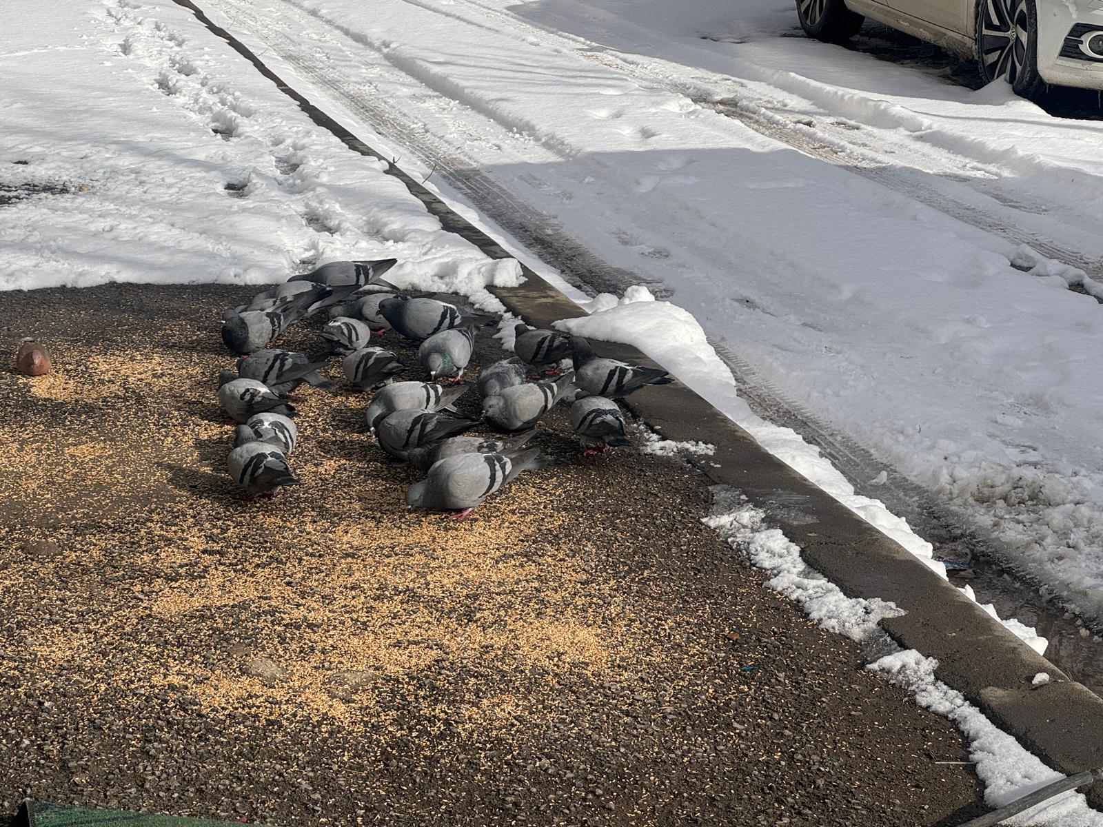 Adnan Ertuğrul, kuşların yiyecek bulmakta zorluk yaşadığını fark ettiğinde, kaldırımdaki karları temizleyerek bir alan açtı ve kuşlar için yem bıraktı. Yozgat’ta karın etkisiyle yiyecek bulmakta güçlük çeken sadece kuşlar değil, aynı zamanda sokak hayvanları da zor durumda. Ertuğrul, hayvanlar için ekmek ve yem bırakmanın, doğaya karşı sorumluluk bilincinin bir göstergesi olduğunu ifade etti.
