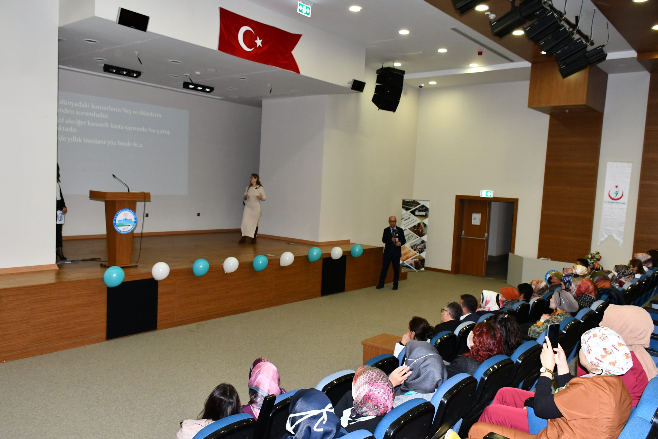 Daha sonra  Yozgat Şehir Hastanesi göğüs hastalıkları hekimi Uz.Dr. Ümmühan Tuğba Tümüklü tarafından slayt ile akciğer kanseri hakkında katılımcılara ayrıntılı bilgiler verildi.