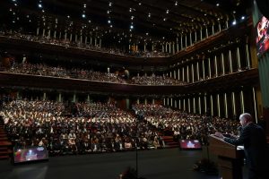 Tören, Cumhurbaşkanı Recep Tayyip Erdoğan’ın teşrifleriyle Cumhurbaşkanlığı Külliyesi Beştepe Millet Kongre ve Kültür Merkezi’nde düzenlendi.