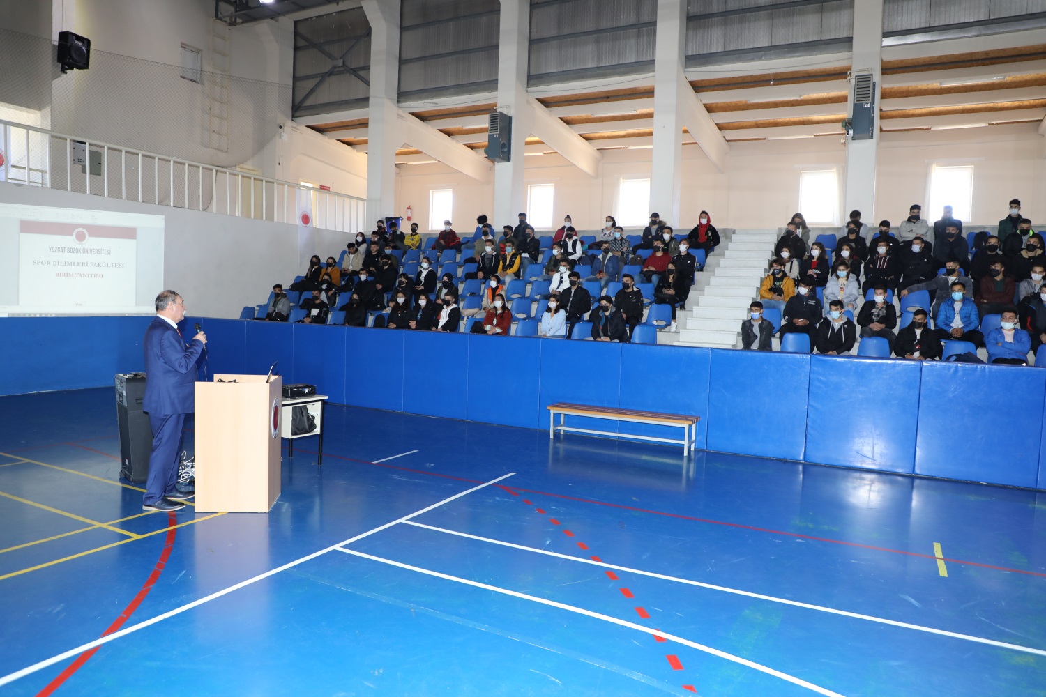 Spor Bilimleri Fakültesi Dekanı Prof. Dr. Mehmet Güçlü, iki yıllık bir ayrılıktan sonra bir arada olmanın mutluluğunu yaşadıklarını belirterek öğretim dönemini sağlıklı bir şekilde devam ettirebilmek için hijyen, maske ve mesafe kurallarına uyulması noktasında hassasiyet gösterilmesi gerekliliğine vurgu yaptı.