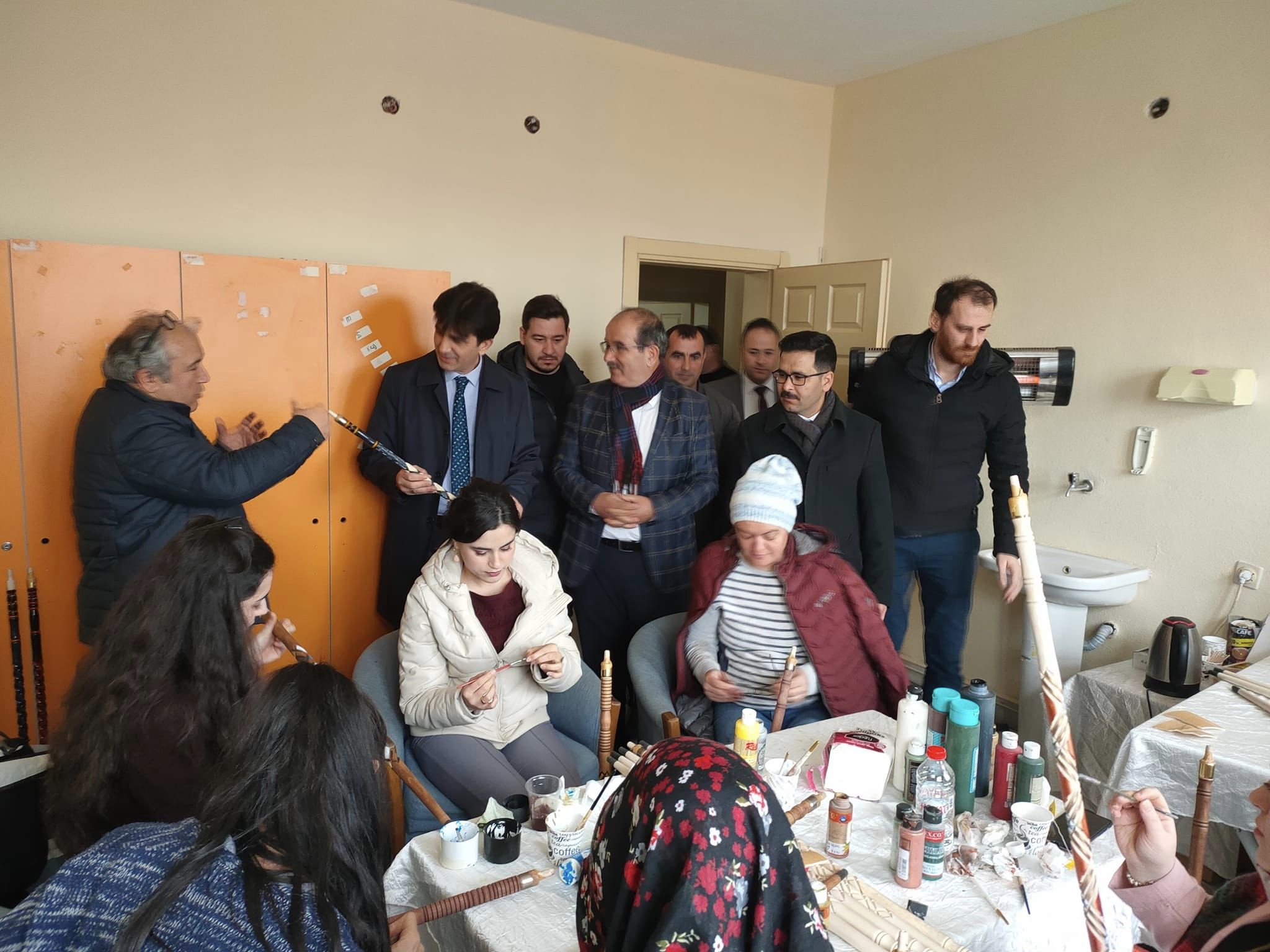 KOP ile Geleneksel El Sanatlarını Yaşatıyoruz Projesi kapsamında gittiği Aydıncık ilçesinde Belediye Başkanı Ahmet Koçak ile bir araya gelen Karakoyunlu, hazırlanan proje hakkında görüş alış verişinde bulundu. İlçede bulunan Aydıncık Sanat Atölyesi, Aydıncık Değerli Taş Atölyesi, Aydıncık Kültür Evi, Ağıllı Haceş Müze Evi ve Pelitli Göl’e giderek incelemelerde bulunan Karakoyunlu, atölyelerde çalışan işçiler ile birlikte bazı el sanatlarının işlemesine destek verdi. Atölyeler hakkında bilgi alan Karakoyunlu, ilçede yapılan ve yapılabilecek olan çalışmalar hakkında Belediye Başkanı Koçak ile görüş alış verişinde bulundu. Haber Merkezi