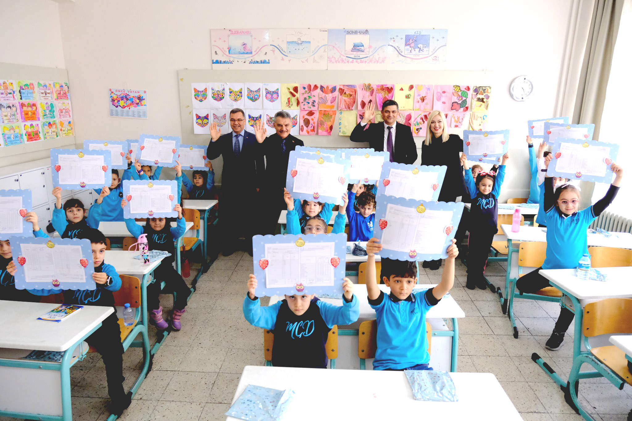 2023-2024 Eğitim Öğretim yılının yarıyıl tatiline girmesi nedeniyle Vali Mehmet Ali Özkan, Müzeyyen Çokdeğerli İlkokulu’nda düzenlenen karne törenine katıldı.