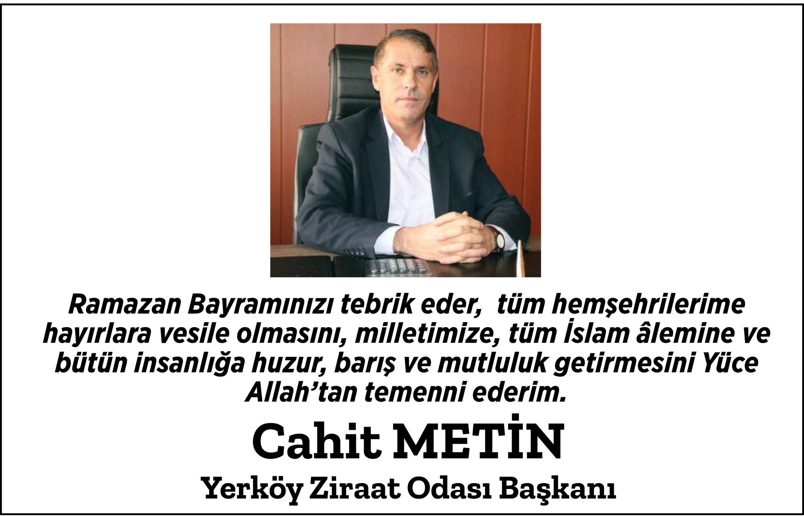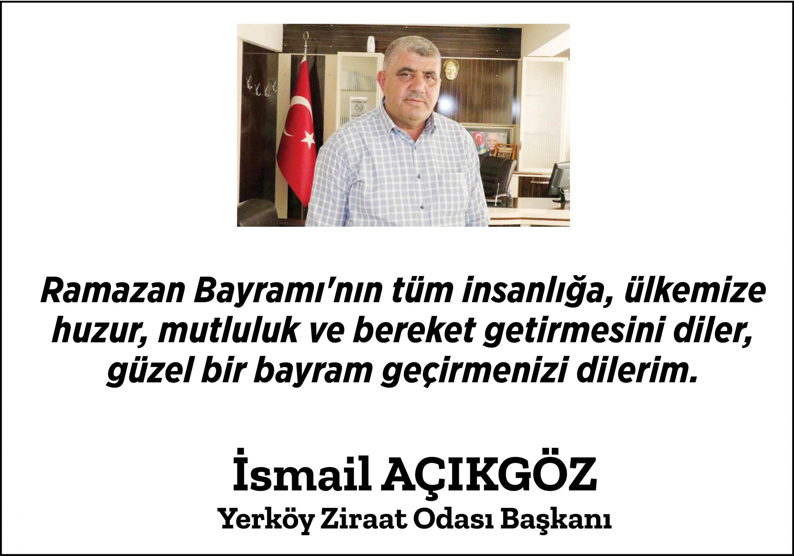 YERKÖY ZİRAAT ODASINDAN RAMAZAN BAYRAMI MESAJI