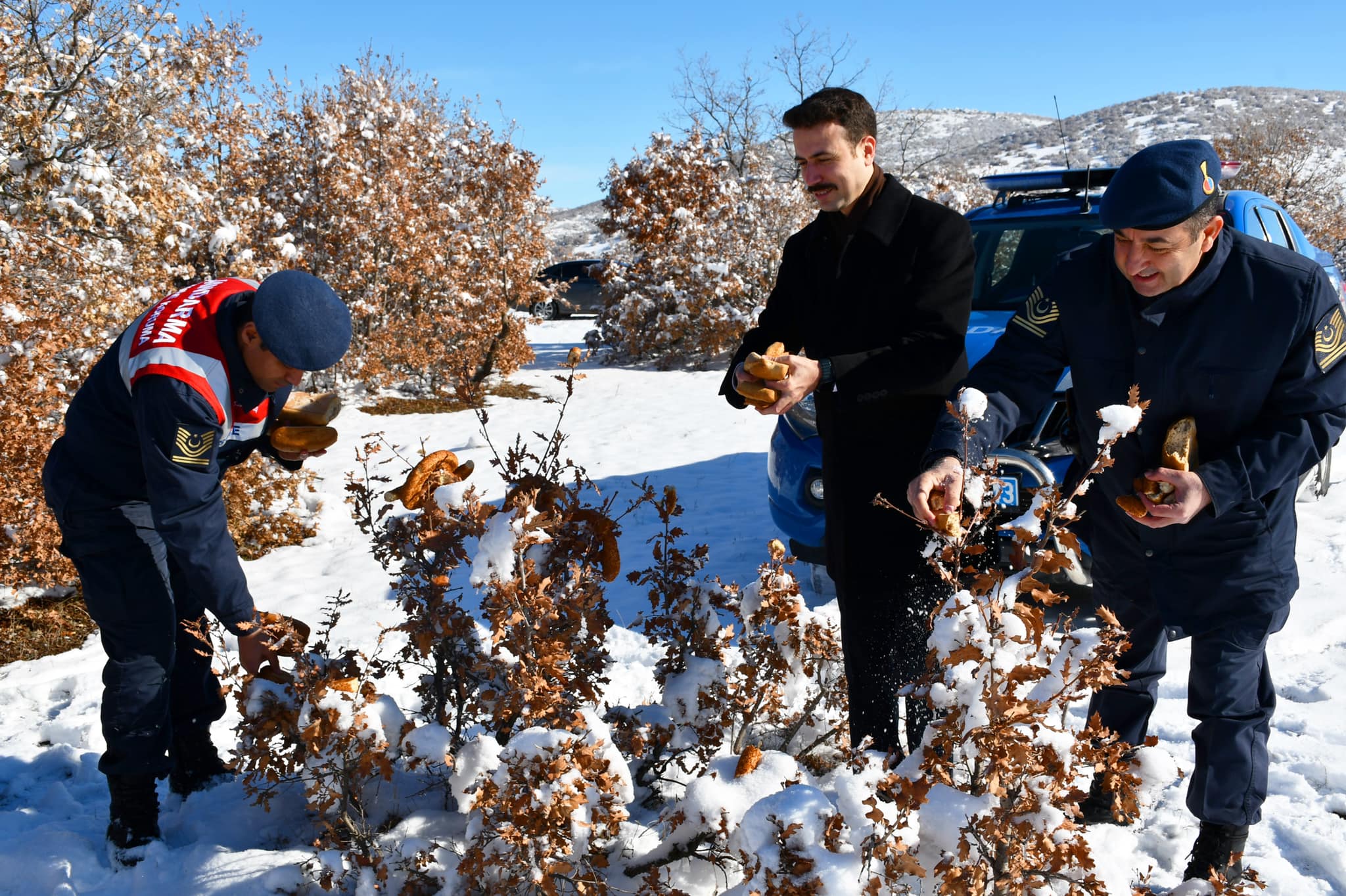 Kaymakam Ali Açıkgöz, kar yağışı dolayısıyla doğanın beyaz kar örtüsü ile büründüğünü belirterek, ilçenin belirli noktalarına kuşlar için yem diğer türler için de ekmek bıraktıklarını söyledi.