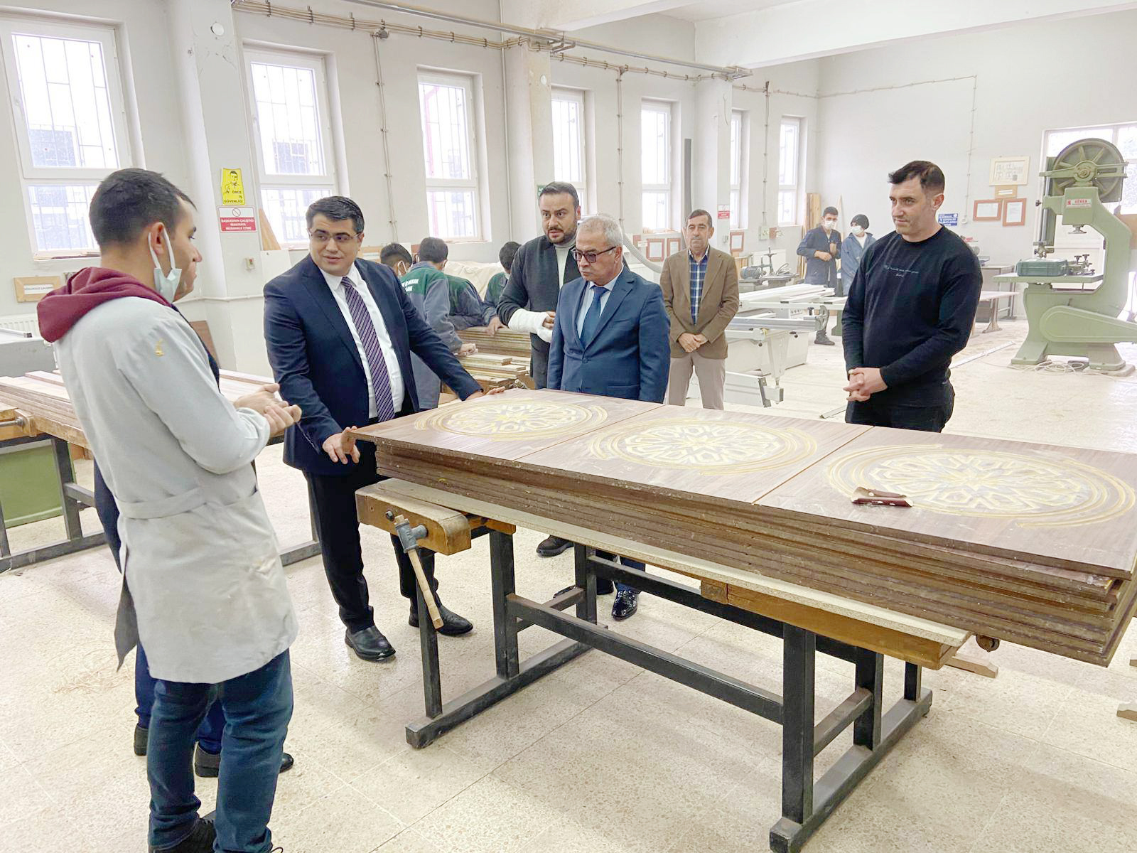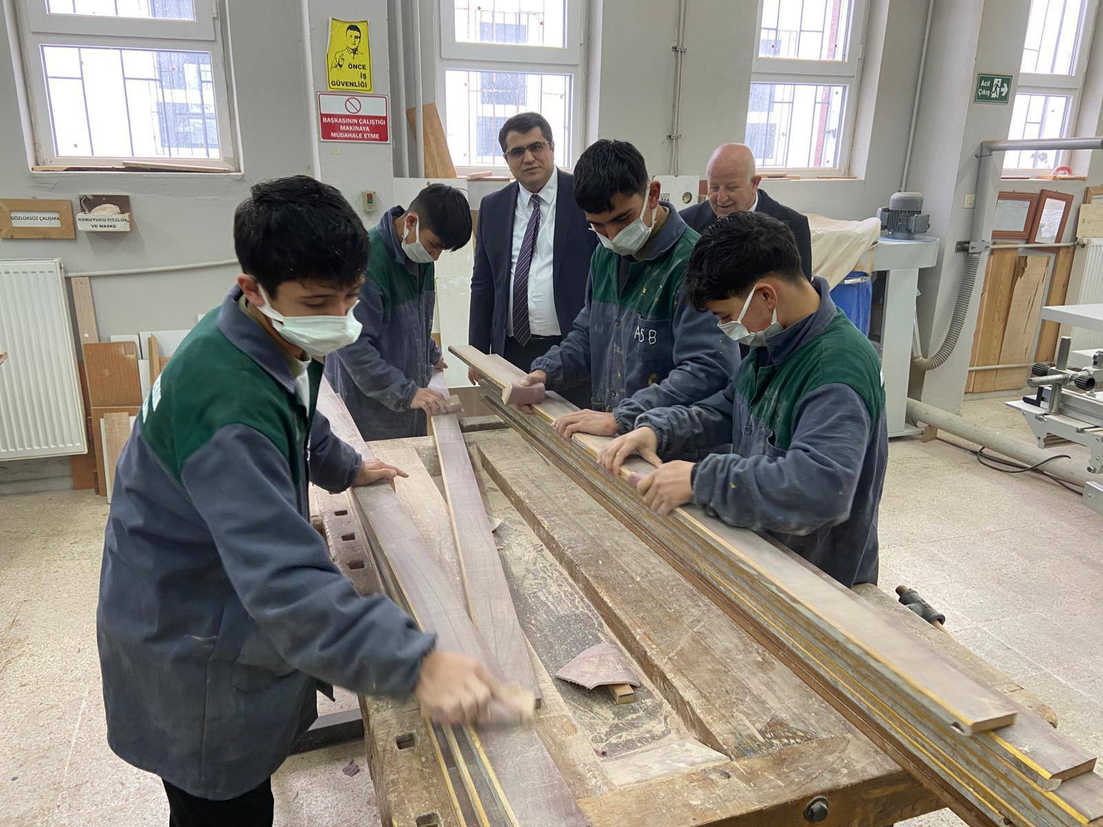 Gerçekleştirilen ziyarette, okul tarafından yürütülen “Meslek Lisesi Hayırda Yarışıyor” projesi kapsamında Akdağmadeni ilçesinde yapımı tamamlanan TOKİ Camii’nin duvar kaplama ve mobilya işleri için, Mobilya ve İç Mekân Tasarımı Bölümü öğrencileri ve öğretmenleri tarafından yürütülen çalışmalar yerinde incelendi. Kaymakam Kaymakçı, proje ve yürütülen çalışmalar hakkında bilgi aldı.