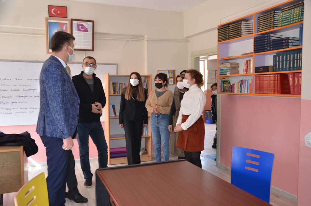Kaymakam Samet Serin, ilk ziyaretini okulda oluşturulan Ahmet Alperen Okçu kütüphanesini gezerek yetkililerden bilgi aldı daha sonra sırasıyla fen bilimleri sınıfı ve beceri atölyesi zeka oyunları sınıflarını gezerek sınıf ve atölyelerin kurulmasında emeği geçen okul personellerine teşekkür etti.