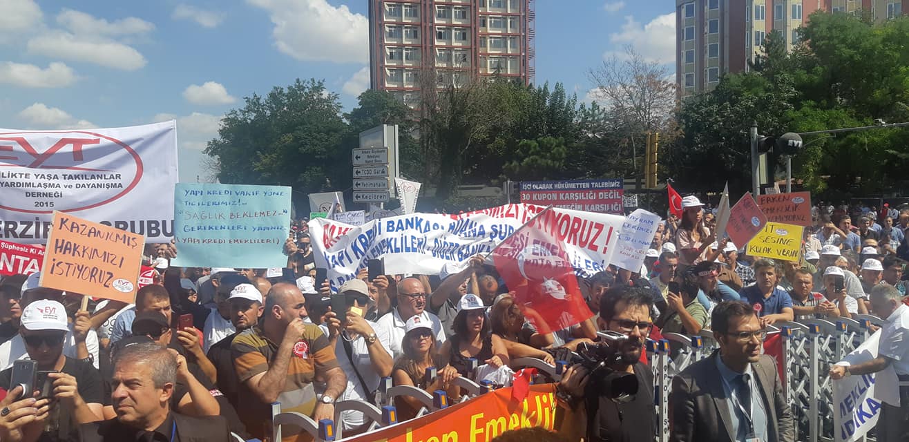 Yirmi yıl önce çıkarılan yasa ile emeklilik hakları ellerinden alınan binlerce yurttaşın katıldığı mitinge çok sayıda CHP ve İyi Parti milletvekili katıldı.