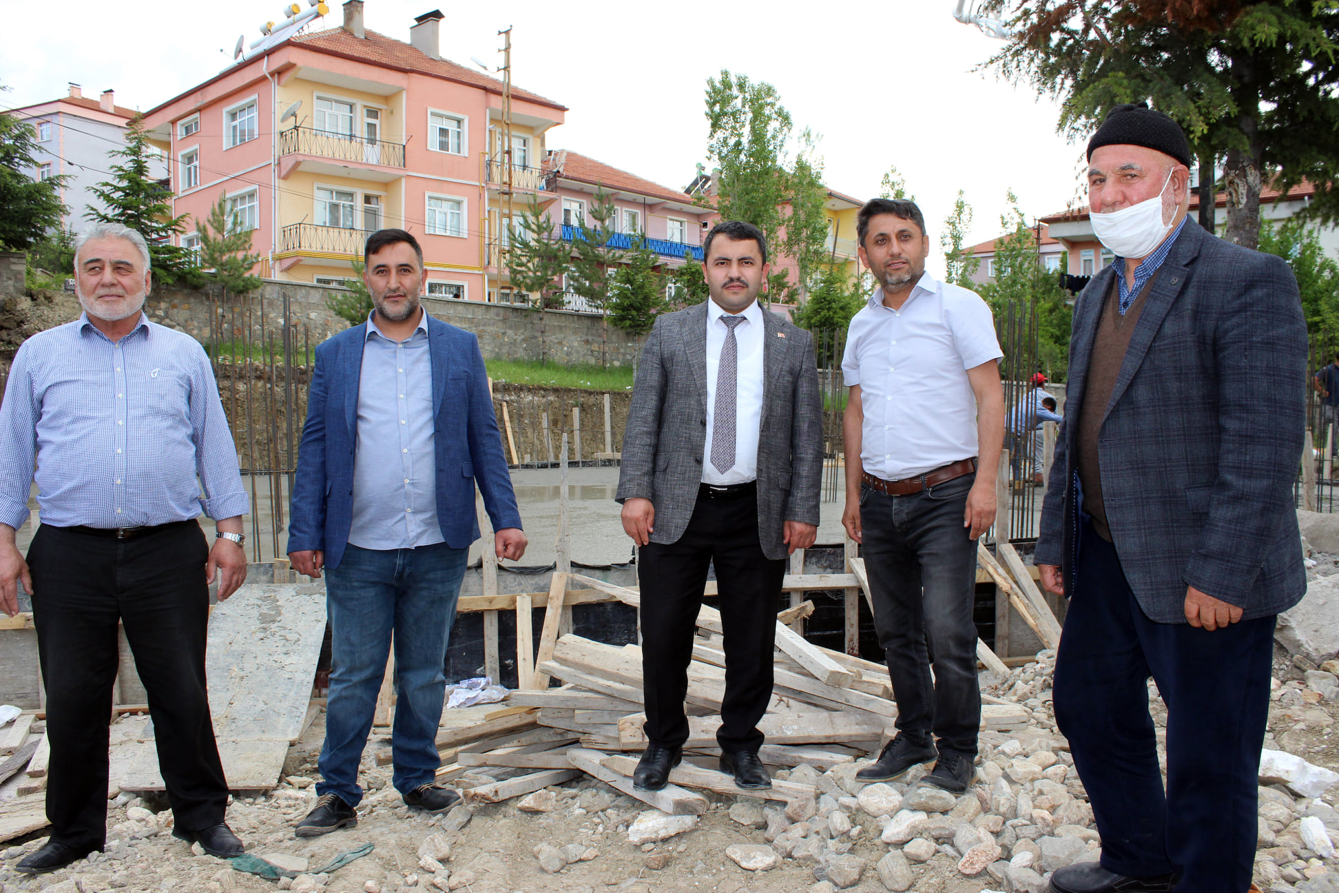 Belediye Başkanı Uzm.Dr.Nezih Yalçın temel atma çalışmalarında Mahalle Muhtarı İsmail Özgan, Dernek Başkanı Hüseyin Adalar, Cami imamları Tekin Çiftçi ve Mehmet Bilici’yi yalnız bırakmayrak çalışmaları yerinde inceledi.