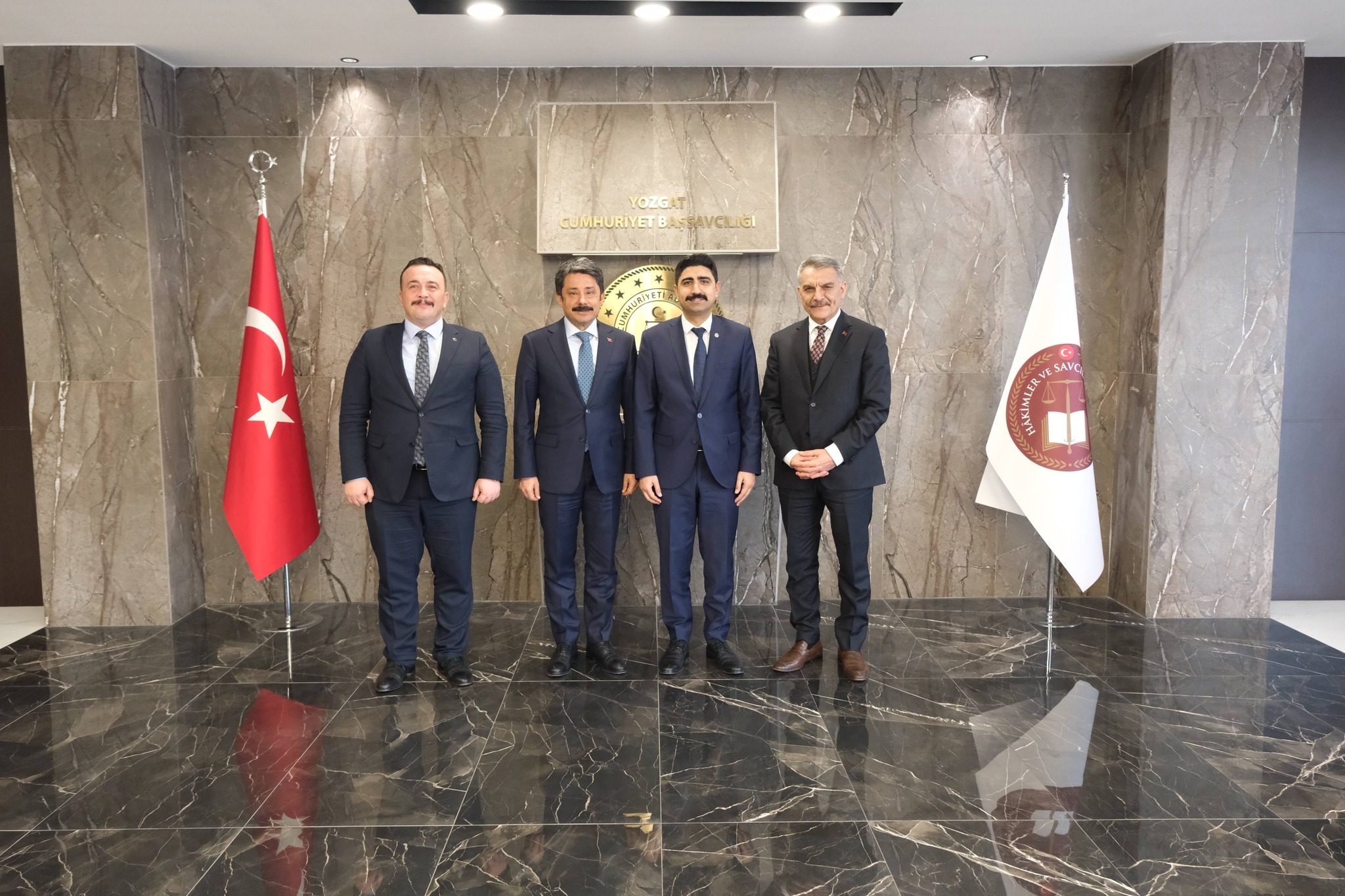 Valilik ziyaretinin ardından bu kez adres Yozgat Cumhuriyet Başsavcılığı oldu. Kırşehir heyetine Yozgat Valisi Mehmet Ali Özkan da eşlik etti. Heyet, Yozgat Cumhuriyet Başsavcısı Enes Serdar Aydoğan’ı makamında ziyaret etti. Ziyarette, adli süreçlerin işleyişi, kurumlar arası koordinasyon ve sahadaki uygulamalar üzerine değerlendirmelerde bulunuldu. Taraflar, özellikle kamu hizmetlerinin daha etkin yürütülmesi adına ortak hareket etmenin önemine vurgu yaptı.