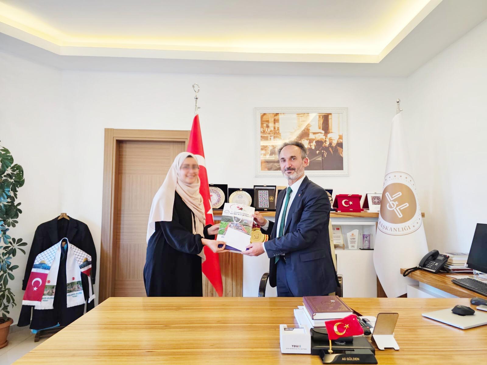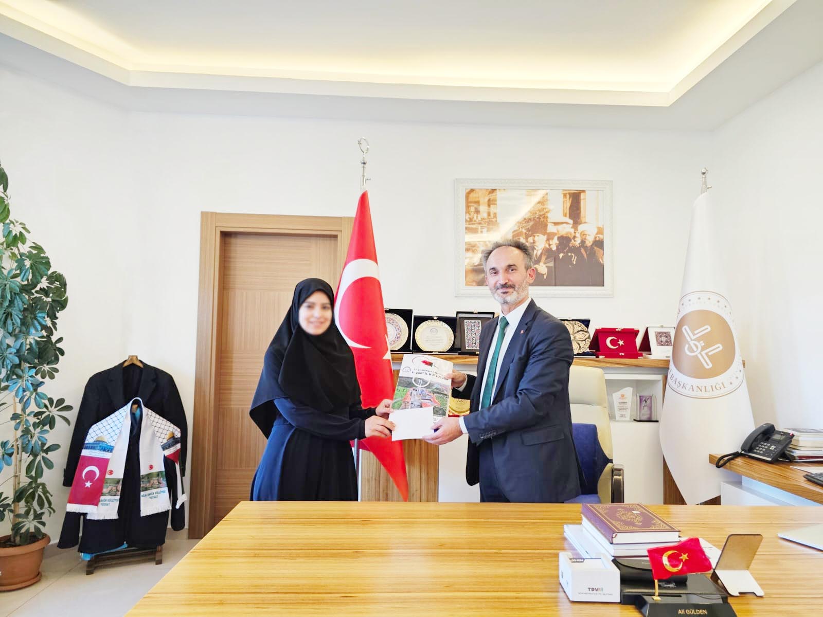 Hafızları, Kur’an Kursu Yöneticisi Amine Nazlı Kümbetli ve öğrencilerin hafızlık öğreticisi Elif Narmanlı’yı tebrik eden İl Müftüsü  Gülden, hafız öğrencilere hediye takdim etti. Haber: Mehmet EROL
