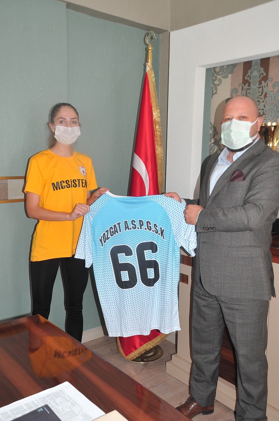 Konuşmaların ardından takım kaptanı Hilal Doğan Yozgat Aile ve Sosyal Politikalar Gençlikspor takımı formasını Cenker Doğan’a hediye etti.