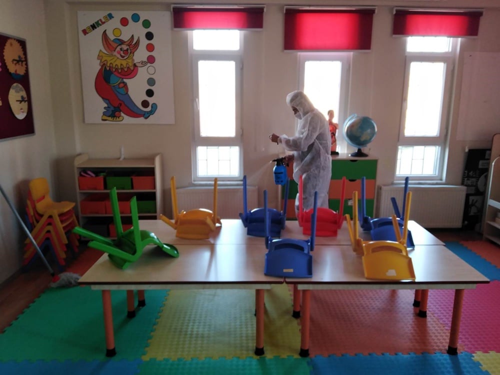 Sınıflarda yüksek sesle etkinlik yapılmaması için düzenlemeler yapıldı. Eğitim ortamlarının düzenli olarak doğal yollarla havalandırılması için gerekli düzenlemeler yapıldı. Alanların taşıdıkları hijyen riskine göre sıklıkta temizlik ve dezenfekte işlemleri gerçekleştirilip kayıtlar tutulmaktadır. Sınıflarda yüksek sesle etkinlik yapılmaması için düzenlemeler yapıldı. Salgın hastalıktan korunma yollarıyla ilgili eğitim ve bilgilendirme faaliyetleri gerçekleştirilecektir.
