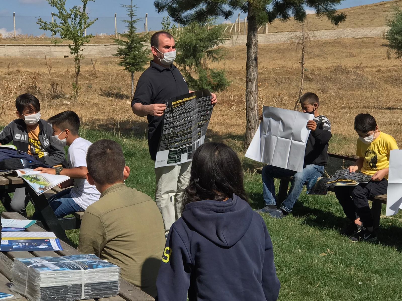 İkinci buluşmayı 7’inci ve 8’inci sınıflarda okuyan öğrencilerle yapan Prof. Dr. Mustafa Böyükata, “Ben de yaparım” başlığı etrafında çocuklarla “bilim okur yazarlığı” yolunda adım atar nitelikte bir söyleşi gerçekleştirdi. Açık havada gerçekleştirilen söyleşide, çocukların dergide ilgilerini ya da dikkatlerini çeken kısımlardan bahsetmeleri istendi.