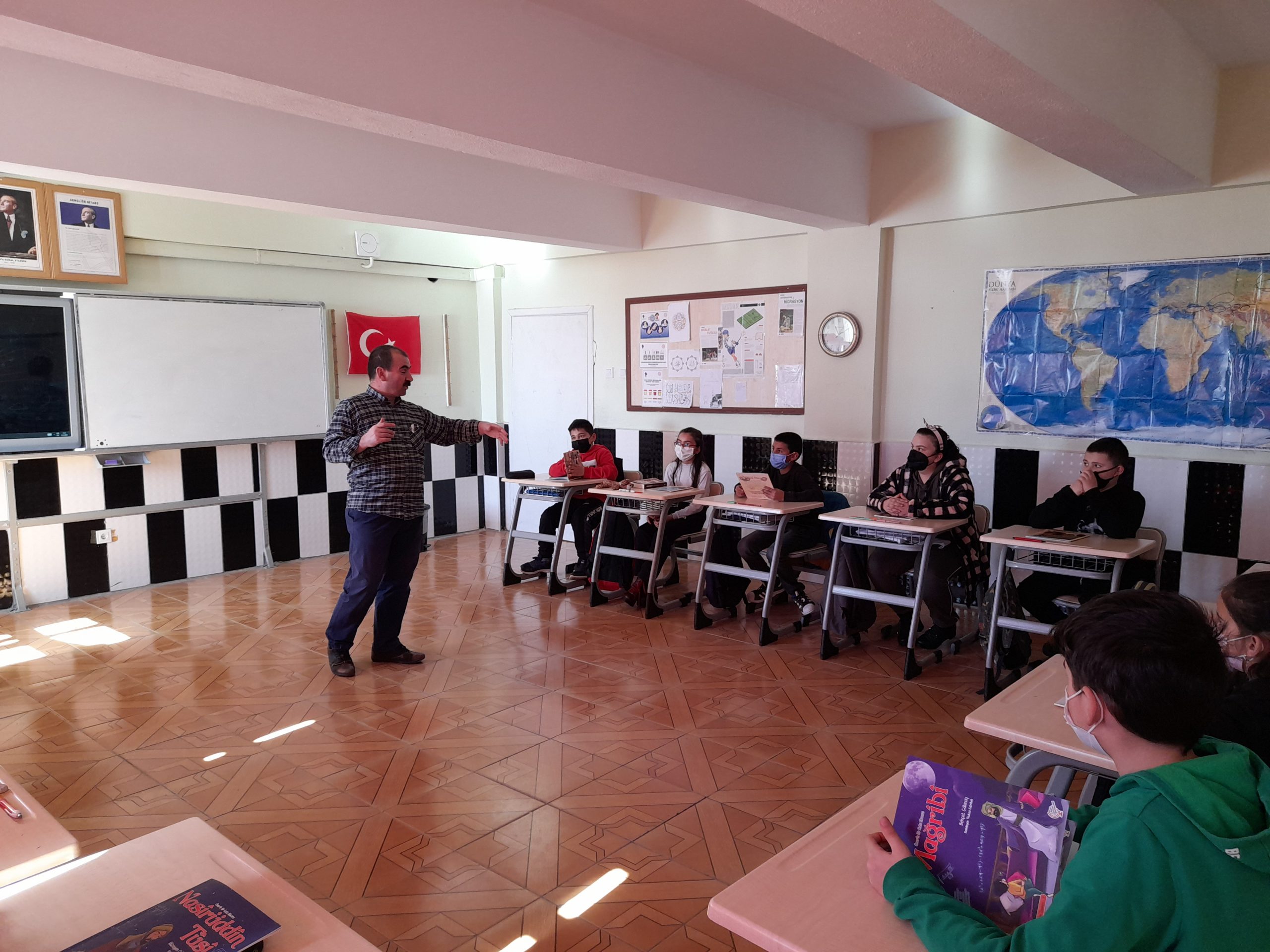 Öğrencilere hediye kitaplar götüren Prof. Dr. Mustafa Böyükata, eğitim öğretim faaliyetlerini destekleyici yönde TÜBİTAK popüler bilim yayınlarından bir miktar dergi ve farklı konularda kitaplardan oluşan hediyeleri de teslim etti.