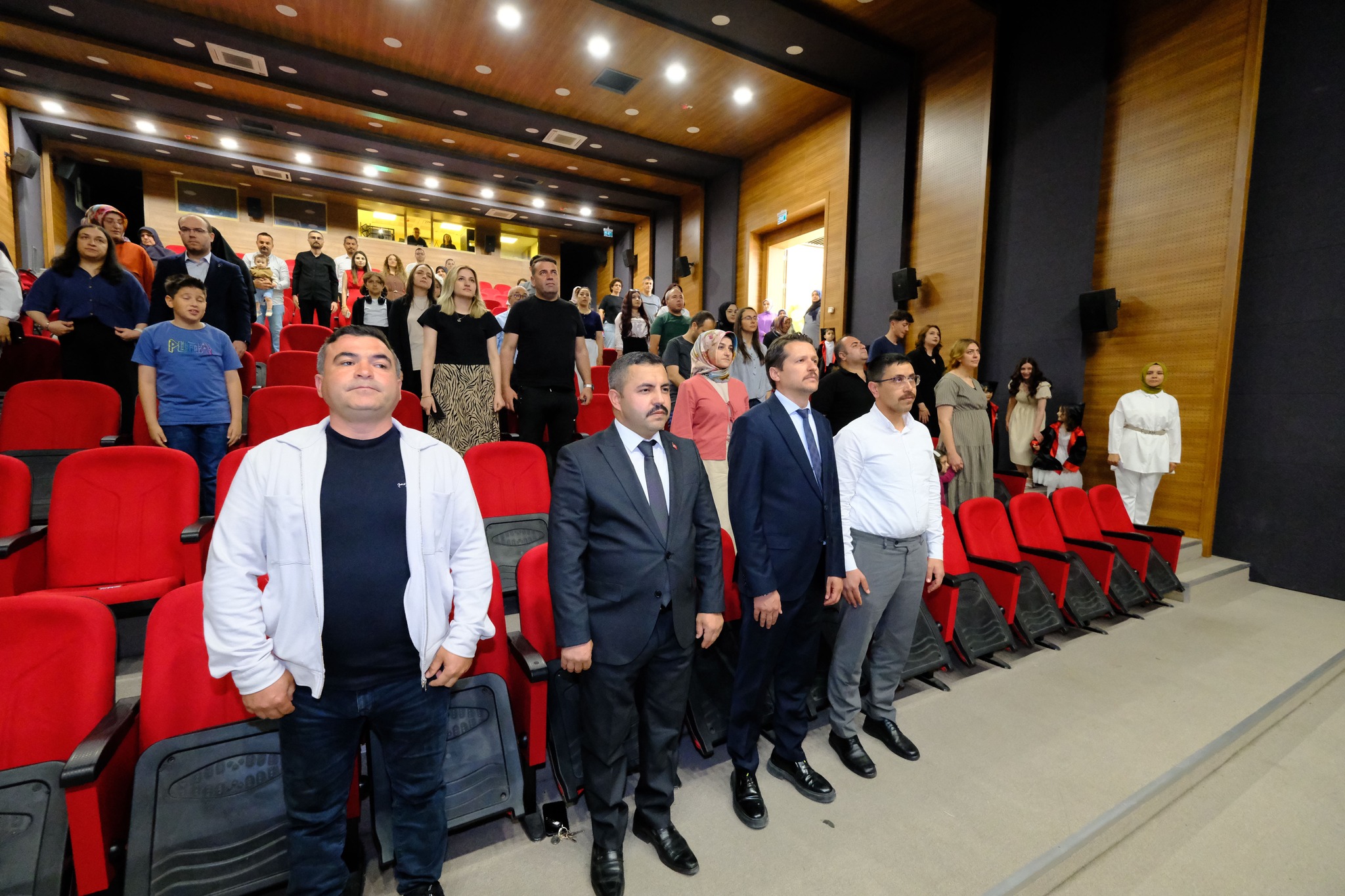 Program, velilerin alkışları ve duygulu bakışları eşliğinde devam etti. Çocuklarını bu özel günde yalnız bırakmayan aileler, hem duygusal hem de gururlu anlar yaşadı. Mezuniyet töreninin ardından aileler, bu özel günü ölümsüzleştirmek adına bol bol fotoğraf çektirdi. / Nazife EKİCİ