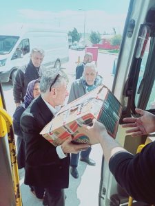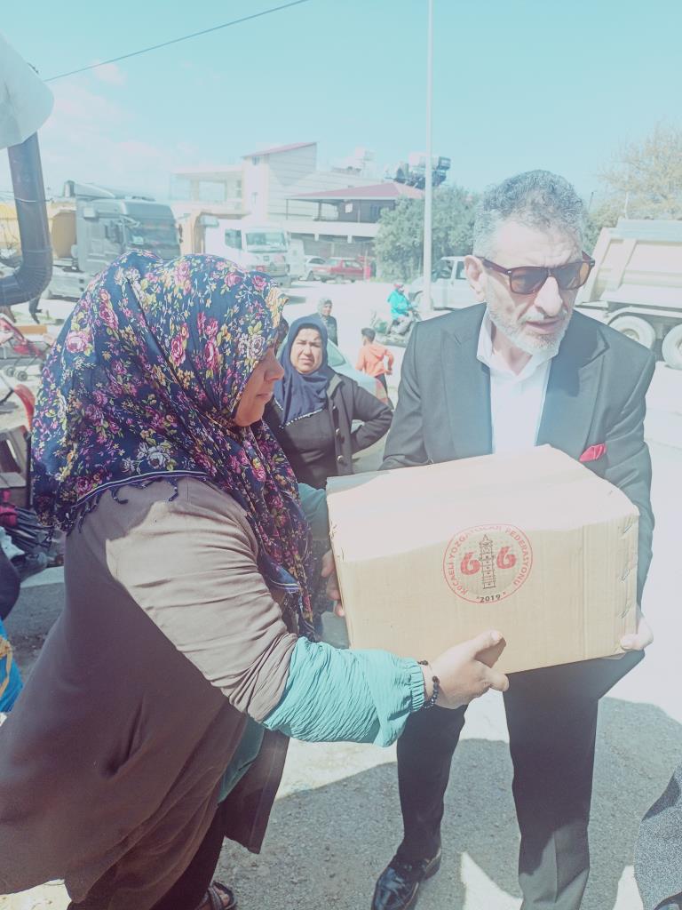 Kocaeli Yozgatlılar Federasyonu yetkilileri, bir otobüs dolusu gıda kolisini Hatay’ın Defne ilçesine götürerek, kenar mahallelerde ve çadırlarda yaşam mücadelesi veren depremzede ailelere dağıttı.